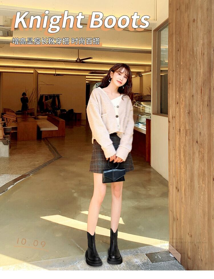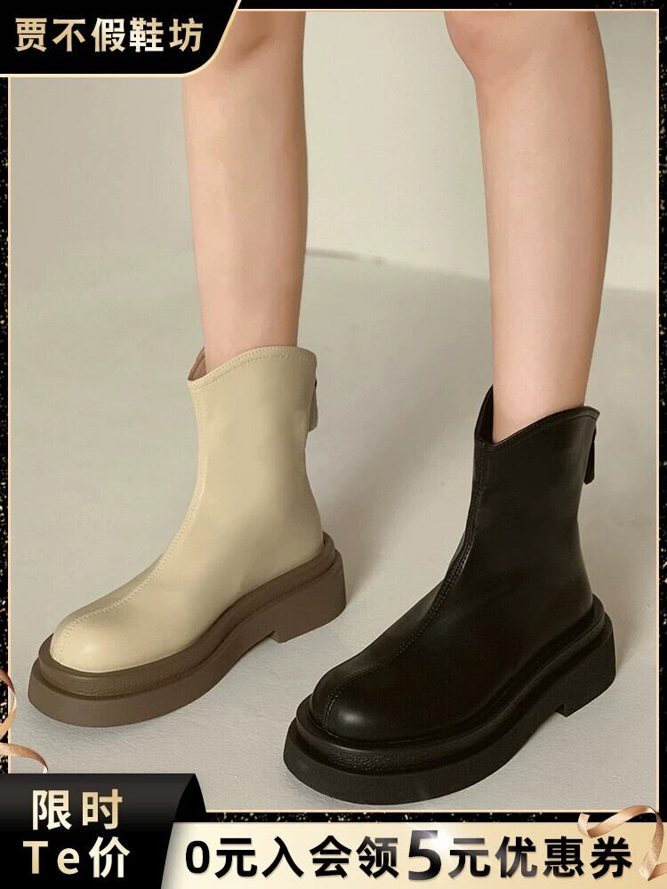 ショートブーツの女性 2023 秋と冬の新しいインターネット有名人の小さな厚底レトロ冬プラスベルベットの薄いマーティンブーツ秋 靴 シューズ オータム 秋物 ウィンター 冬物 jxjxf28258668204