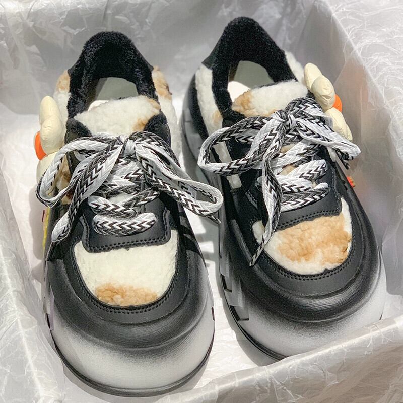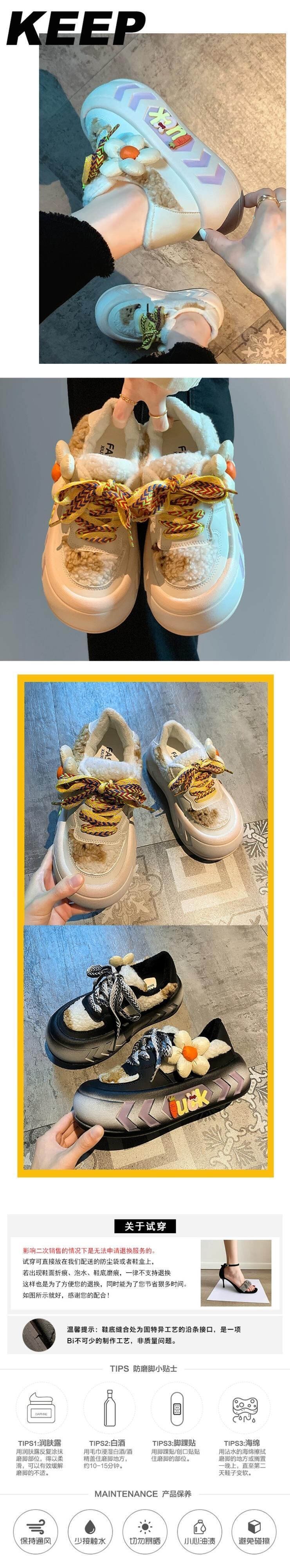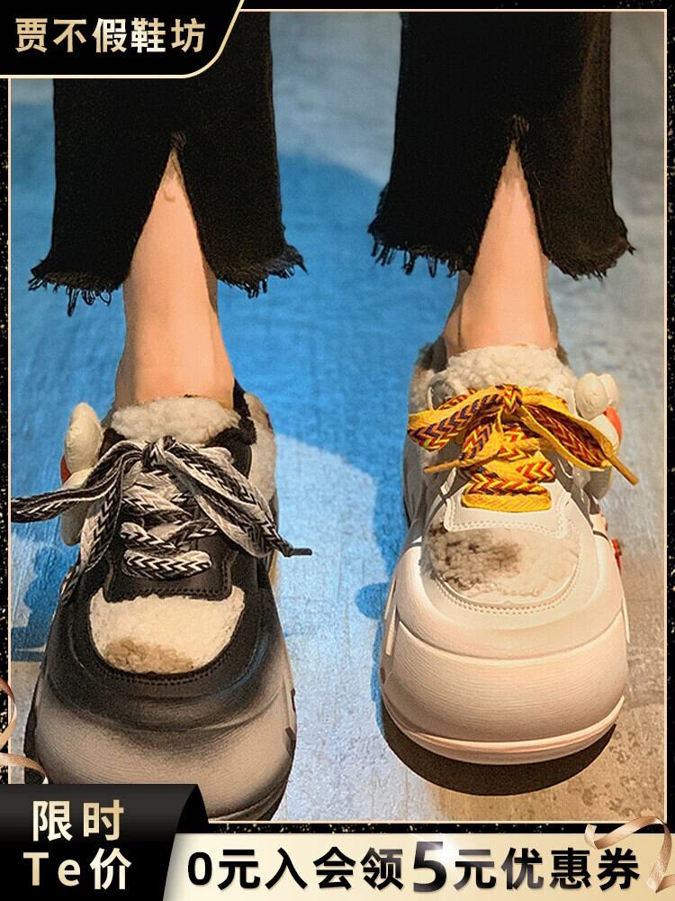 Jia Bujia カジュアルシューズの女性 2023 冬の新毛皮のようなカジュアルコットンシューズノンスリップ小さな厚底スポーツシューズ 靴 ウィンター 冬物 jxjxf75857541156