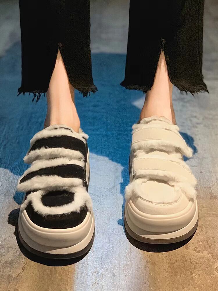 厚底スポーツシューズの女性 2023 秋と冬の新しいインターネットセレブファッショントレンドベルクロプラスベルベット暖かいカジュアルコットンシューズ 靴 オータム 秋物 ウィンター 冬物 jxjxf56798590686