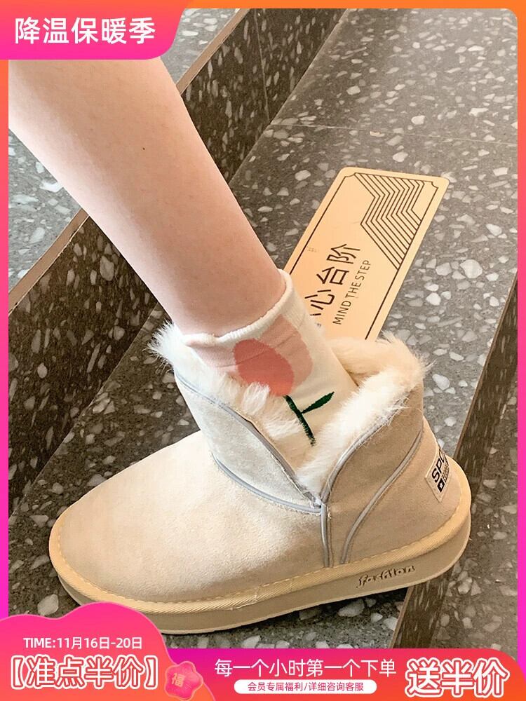 Jia Bujia スノーブーツ女性 2023 秋冬新スタイルファッショナブルで多用途な快適な平底滑り止めカジュアル暖かいコットンブーツトレンディ 靴 シューズ オータム 秋物 ウィンター 冬物 jxjxf14817457486