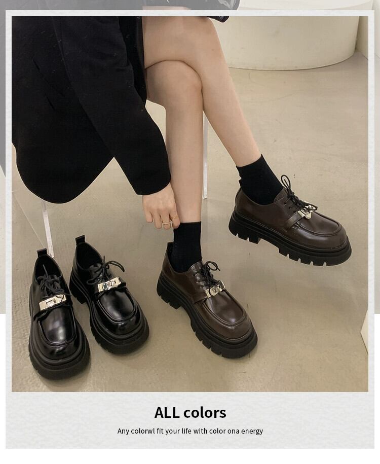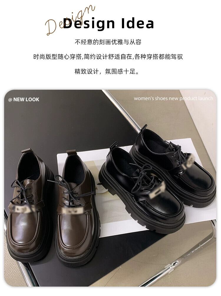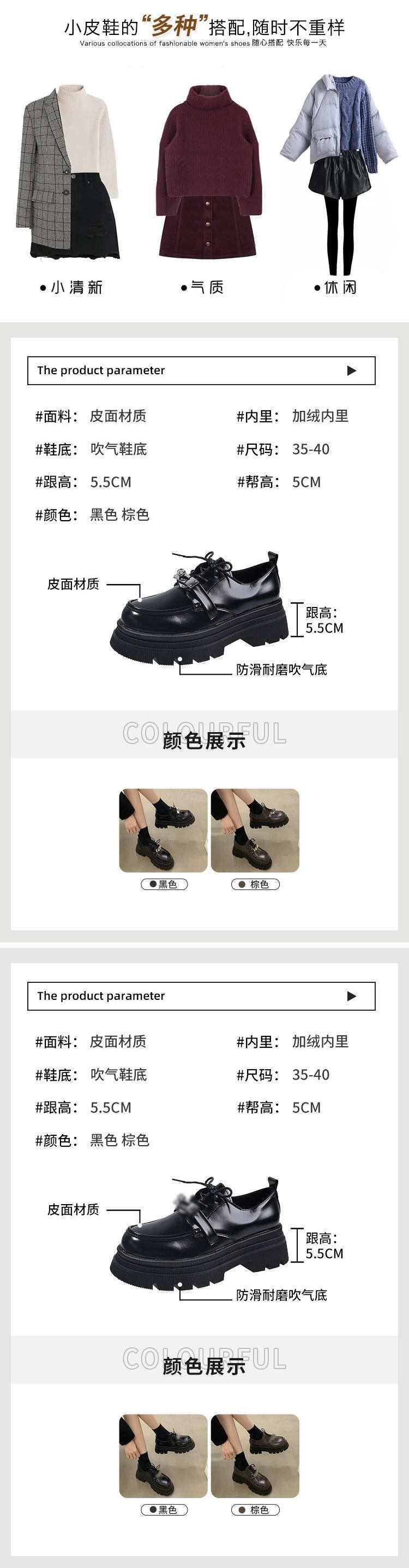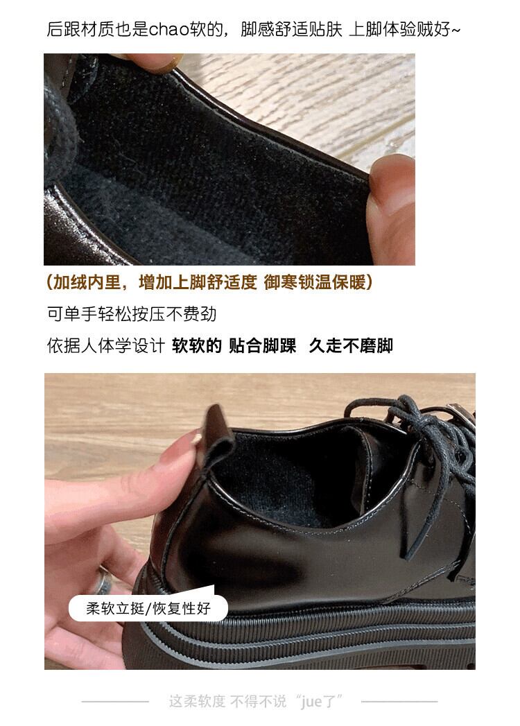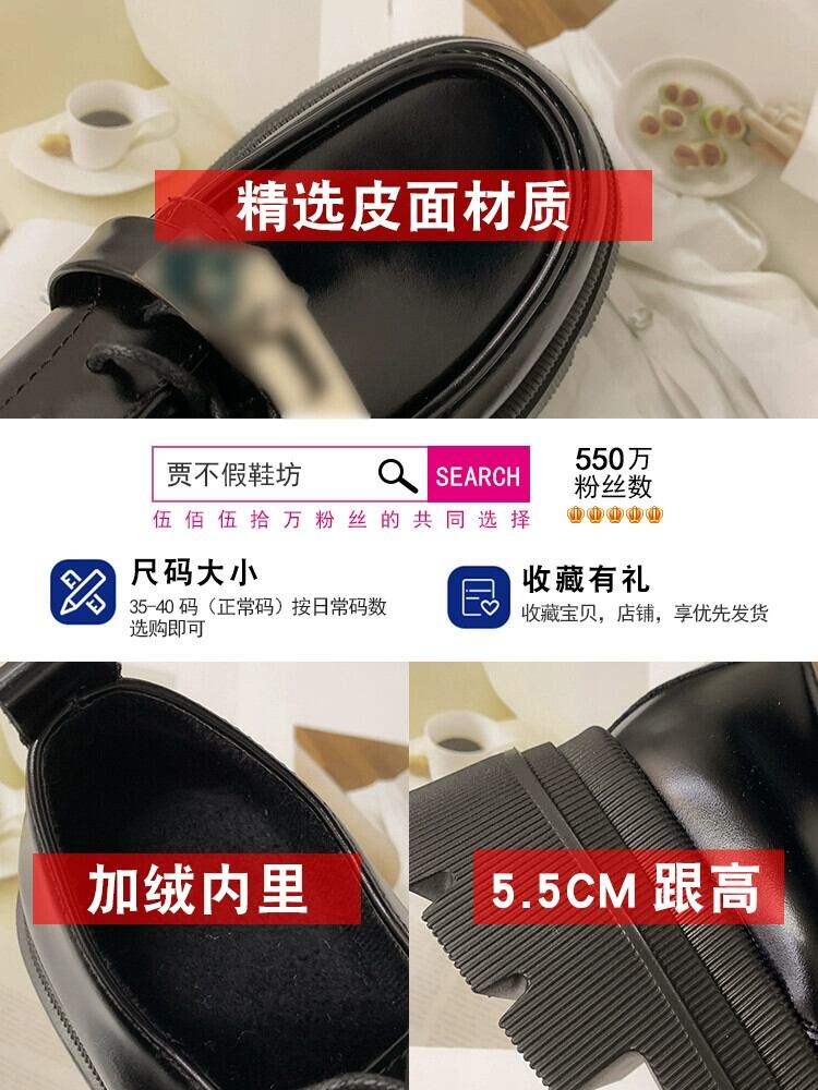 英国スタイルの小さな革の靴の女性 2023 新しい秋と冬プラスベルベット黒のファッションロフト小さな厚い底の強化靴 シューズ ブラック オータム 秋物 ウィンター 冬物 レザー jxjxf56942235543
