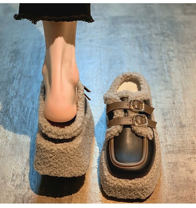インターネット有名人包頭スリッパ女性 2023 冬の新アウターウェアスーパーレトロ多用途厚底ファッション毛皮のようなドラッグトレンド ミュール 靴 シューズ ウィンター 冬物 jxjxf15805285467