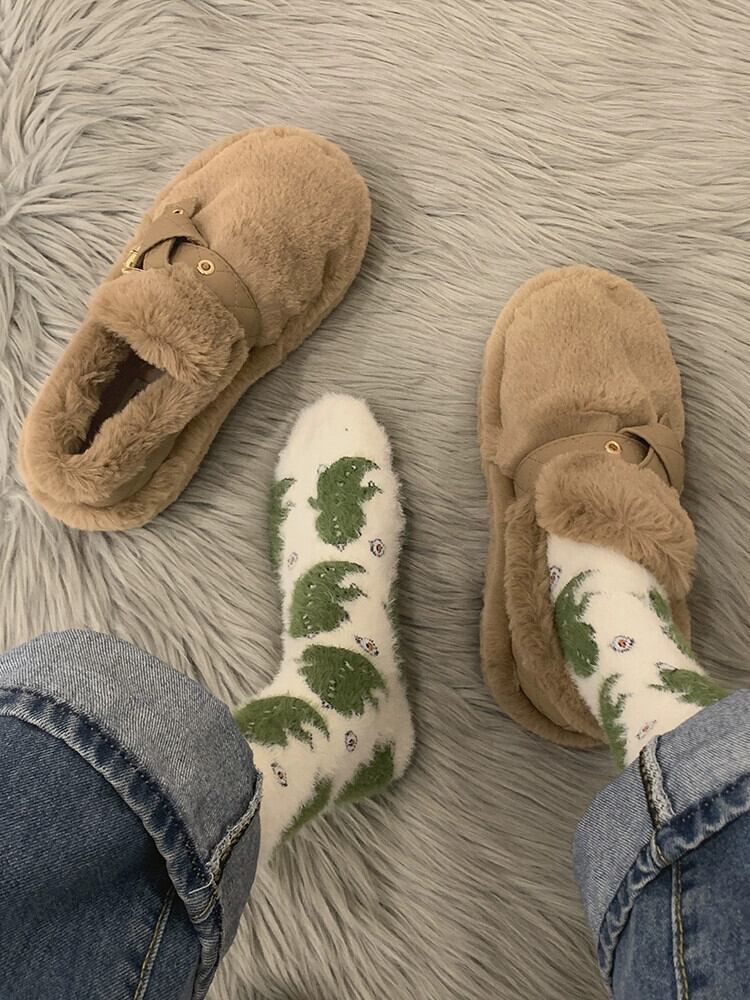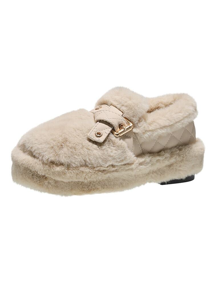 Jia Bu 偽綿の靴の女性の冬プラスベルベット 2023 新しいカジュアル毛皮のような靴レトロフラットアンチスキーブーツトレンド シューズ コットン ウィンター 冬物 jxjxf40824216690