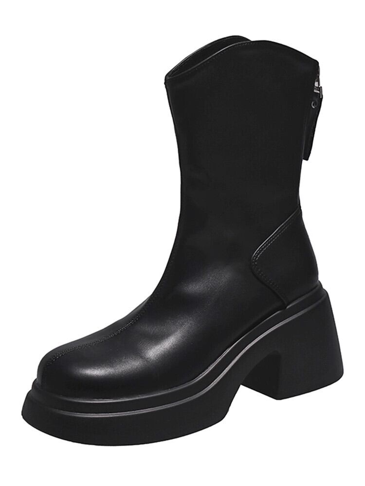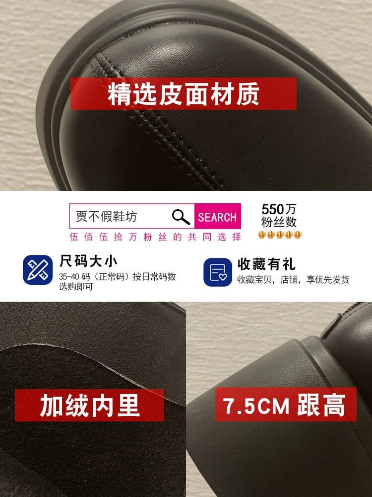 Jia Bujia ブーツ レディース ショートブーツ 2023 秋冬新作プラスベルベットファッショナブルな多用途太いヒール滑り止めレトロスリムブーツ 靴 シューズ オータム 秋物 ウィンター 冬物 jxjxf33466461011