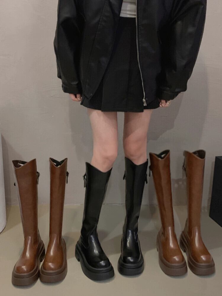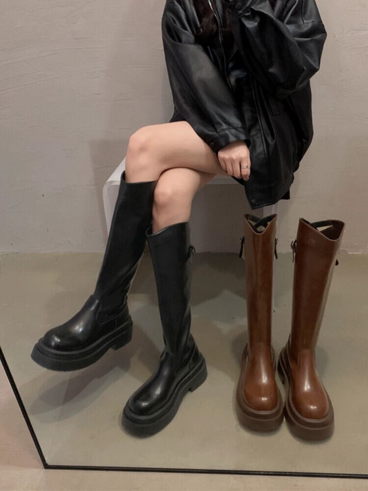Jia Bujia インターネット有名人のブーツの女性 2023 冬の新ファッション多用途気質レトロスリム厚底騎士ブーツ 靴 シューズ ウィンター 冬物 jxjxf39324292049
