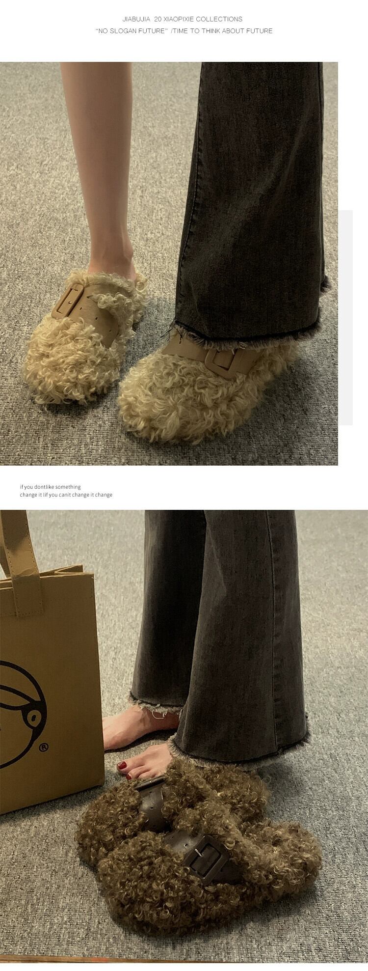 Jia Bujia Baotou ドラッグレディースアウター 2023 冬の新ファッションレトロスタイル平底 comtable 毛皮の靴トレンド シューズ ウィンター 冬物 jxjxf73229606185
