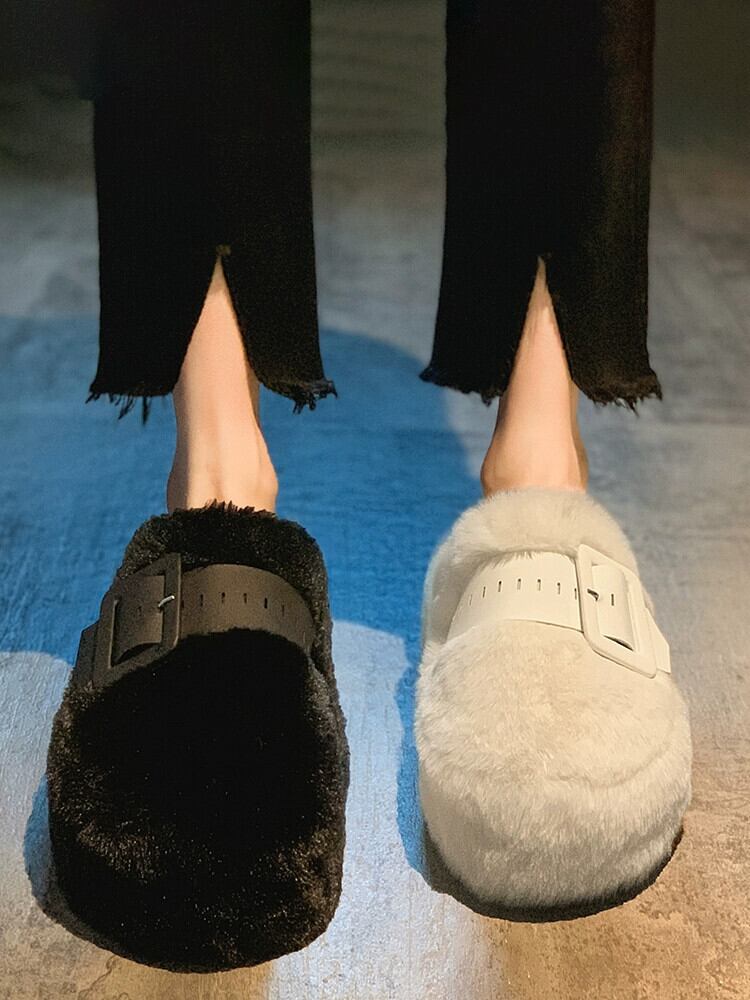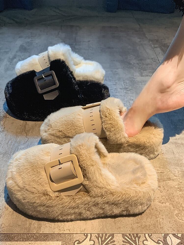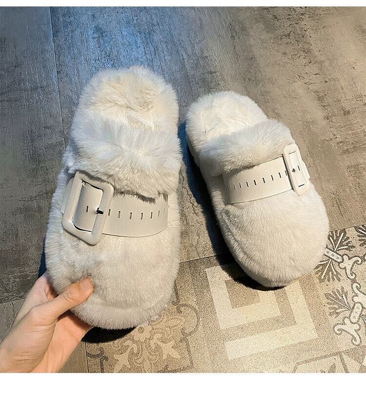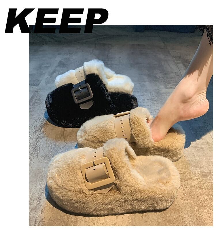 Jia Bujia 女性のアウターウェア包頭モップトップス 2023 新しい冬スタイルベルトバックルファッション暖かい厚底毛皮モップ ウィンター 冬物 ハーネス jxjxf71419751611