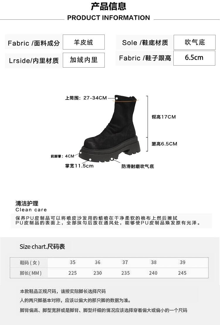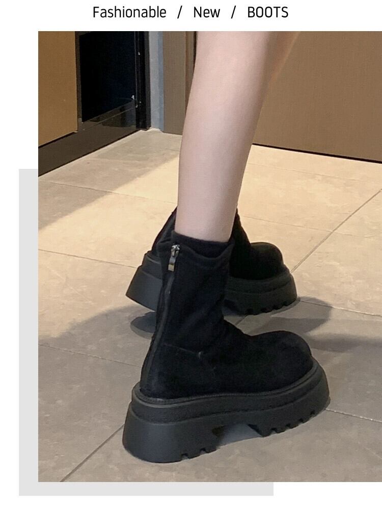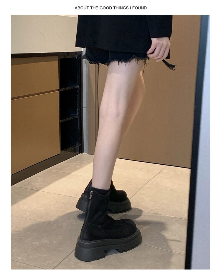 Jia Bufake マーティンブーツレディース 2023 冬の新スタイルプラスベルベットフレンチスタイルの小さなショートブーツ小さな厚底スリムブーツ 靴 シューズ ウィンター 冬物 jxjxf64403747530