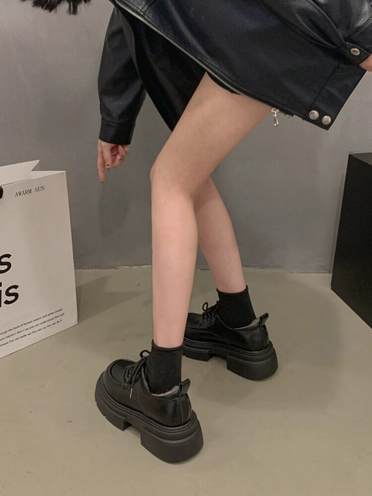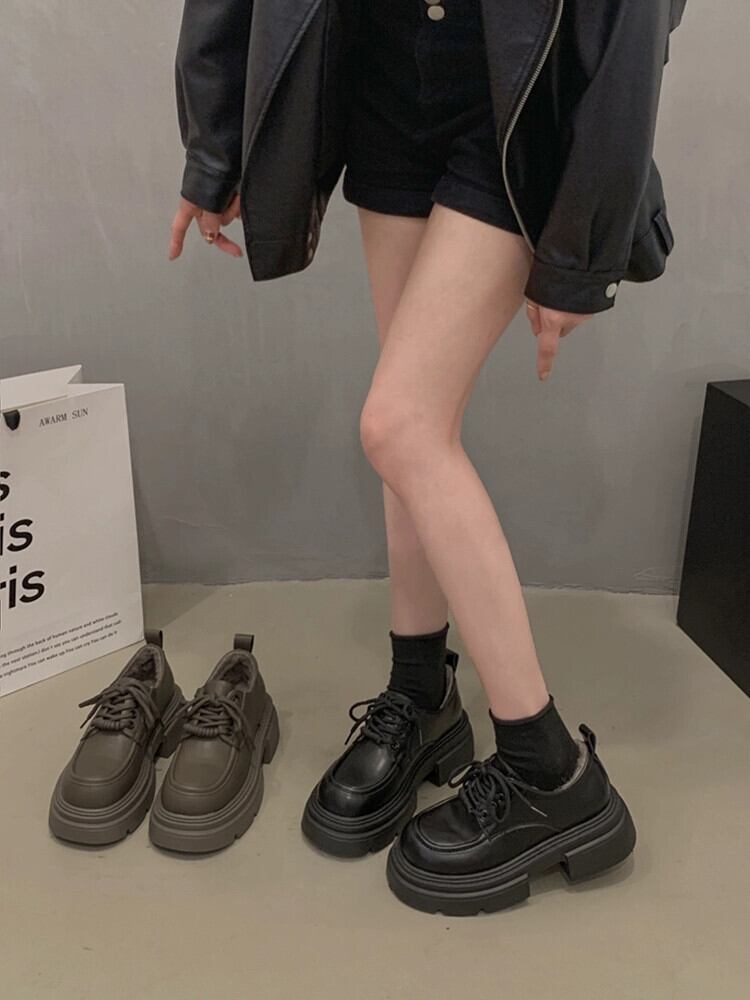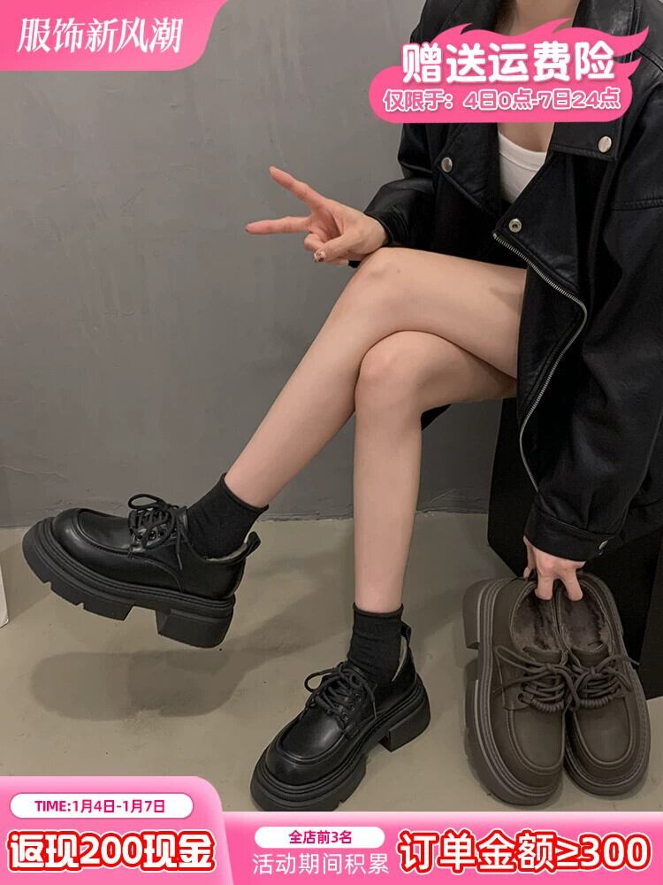 Jia Bufake シングルシューズの女性 2023 新しい冬のファッション多用途な eign スタイルの小さな厚いソールプラスベルベットの小さな革靴 ウィンター 冬物 レザー jxjxf64592755945