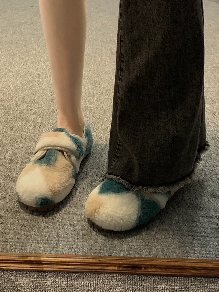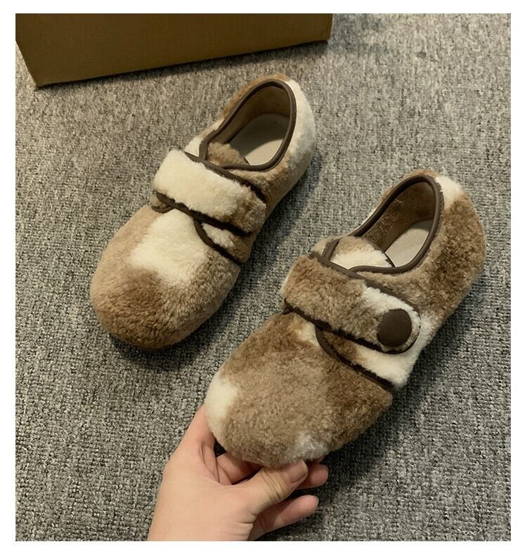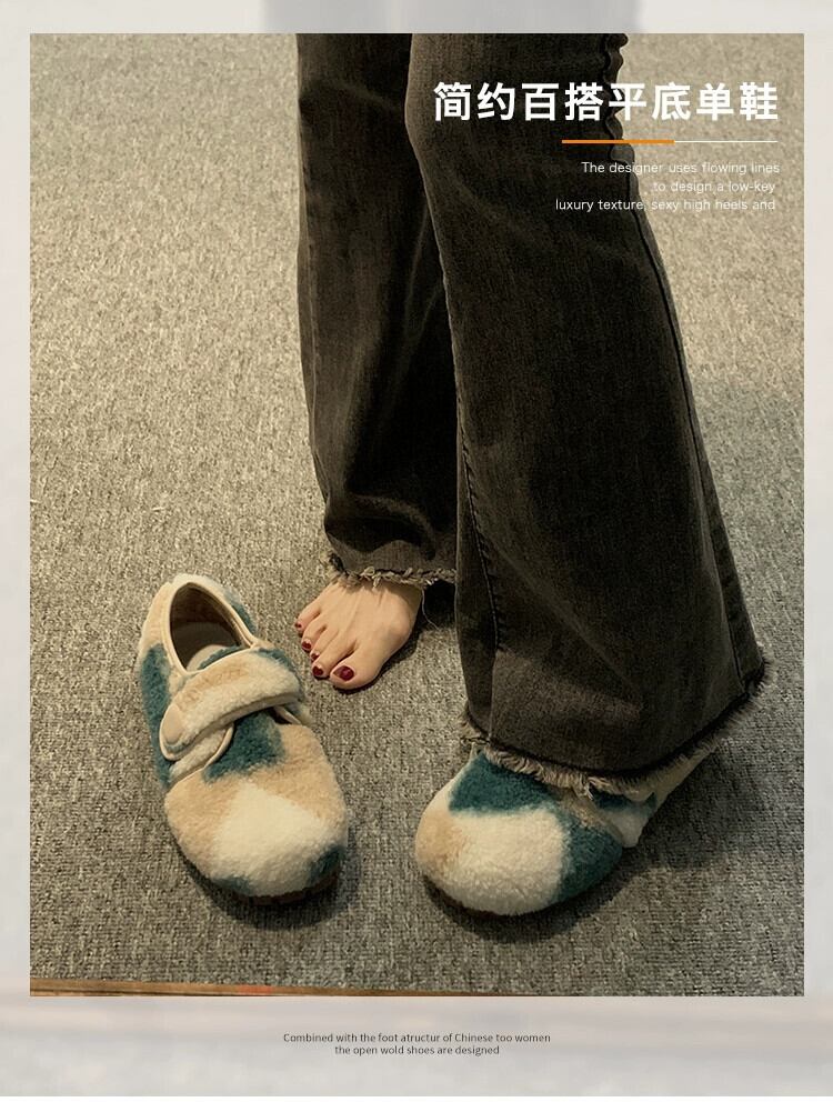 Jia Bujia レディース ファーリー シューズ 2023 冬多用途ベルクロ平底 Comtable ビーニー シューズ トレンディ 靴 ウィンター 冬物 jxjxf75485457831