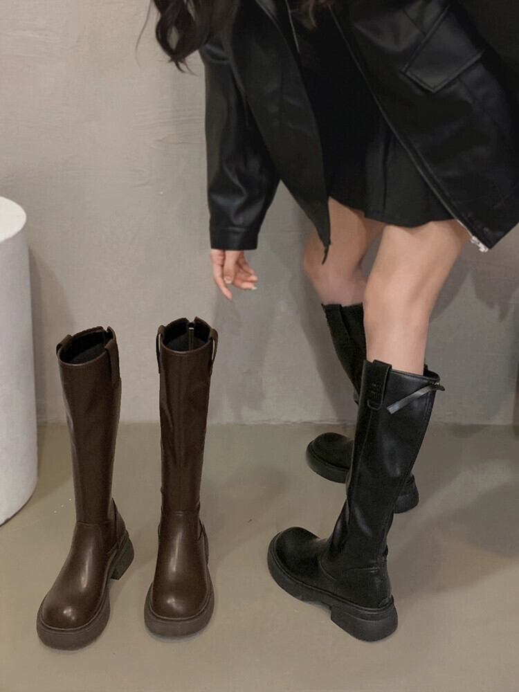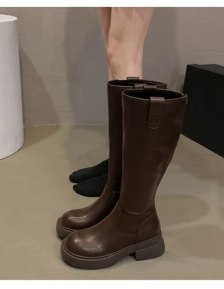 Jia Bujia レディースブーツ 2023 冬レトロシンプルフレンチスタイル Comtable トールスリムブーツトレンディ 靴 シューズ ウィンター 冬物 jxjxf64670983178