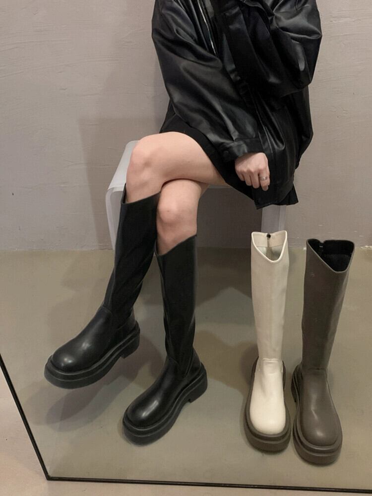 Jia Bujia 厚底ブーツの女性 2023 冬の新しいレトロなスタイルのシンプルで背の高い痩身ナイトブーツトレンド 靴 シューズ ウィンター 冬物 jxjxf61790535327