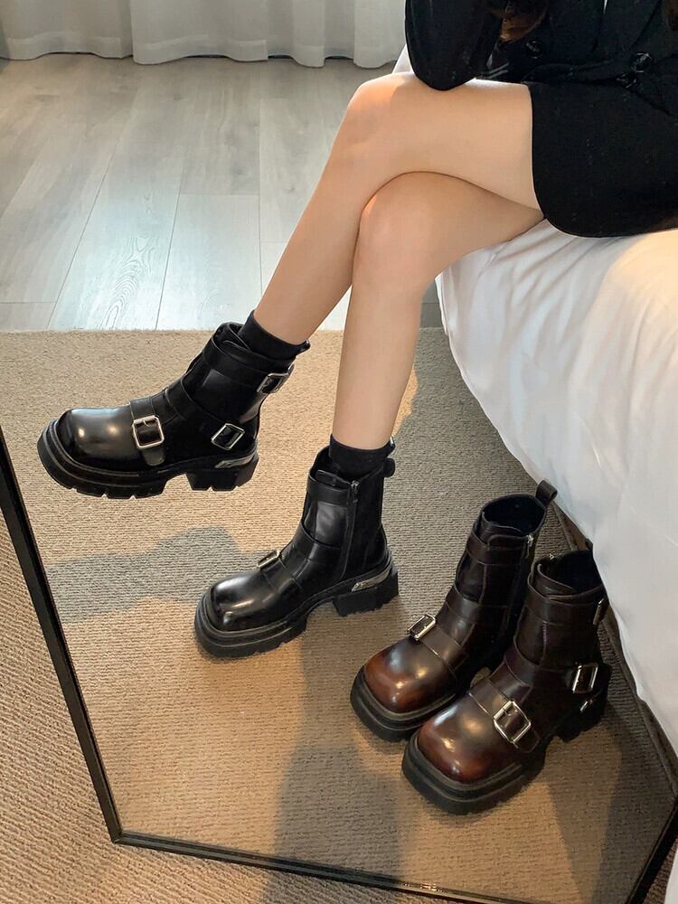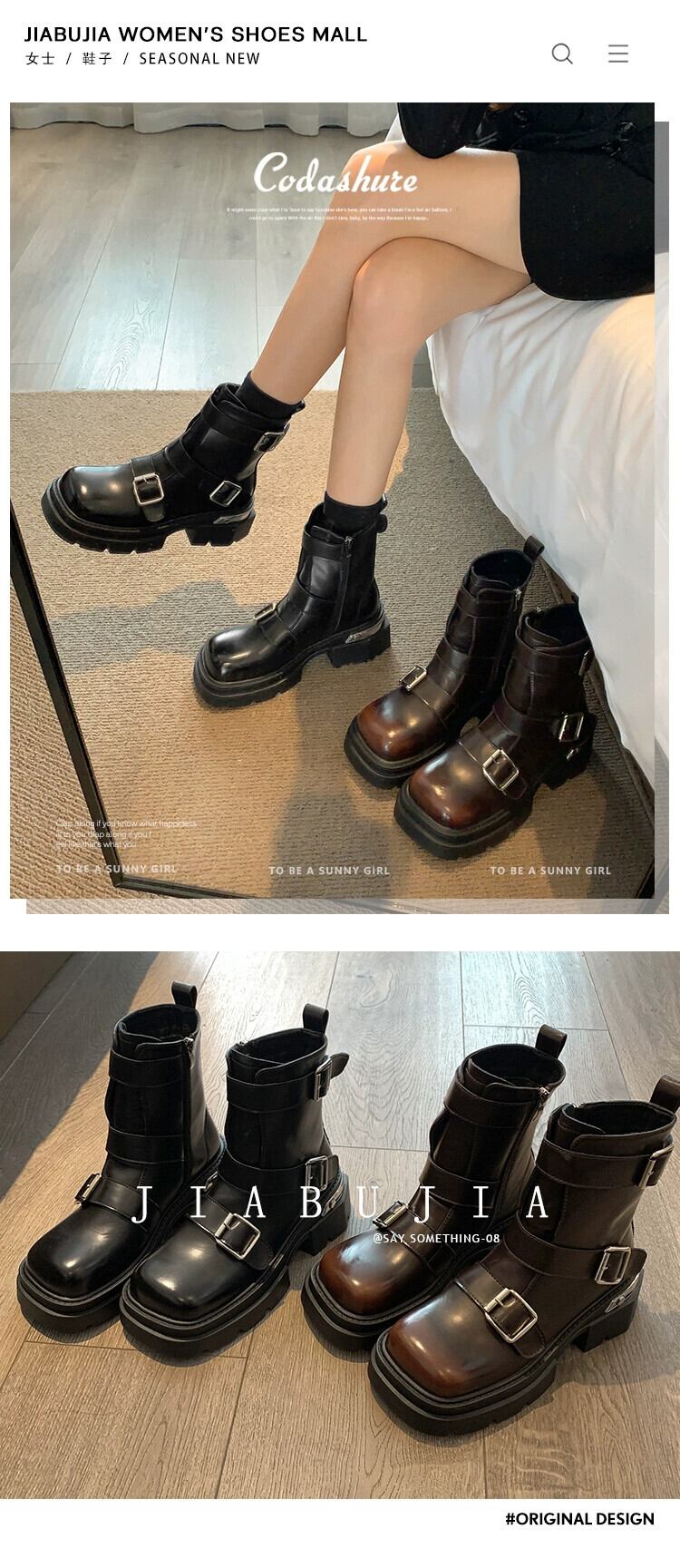 Jia Bufake マーティンブーツ女性 2023 春と冬の新作シングルブーツ人気のスタイルの小さなショートブーツ小さな厚底ブーツ 靴 シューズ スプリング 春物 ウィンター 冬物 jxjxf62664516821