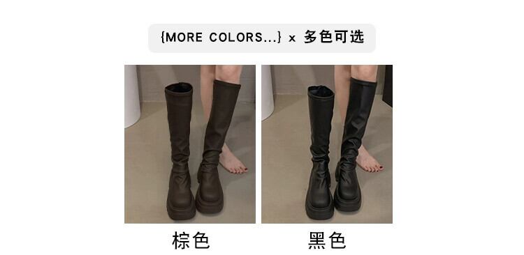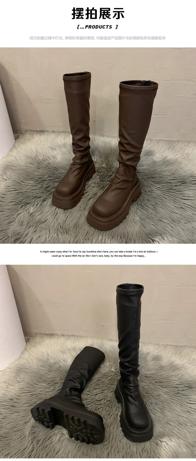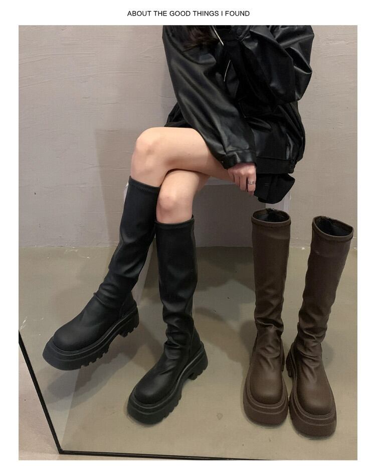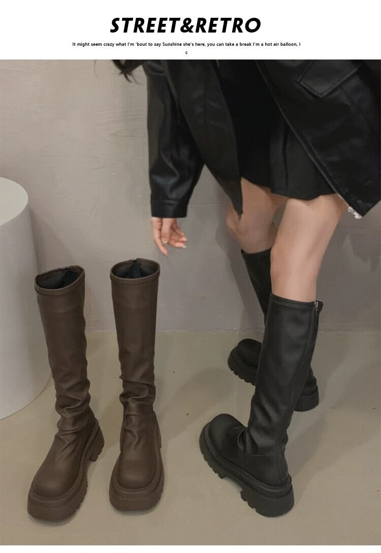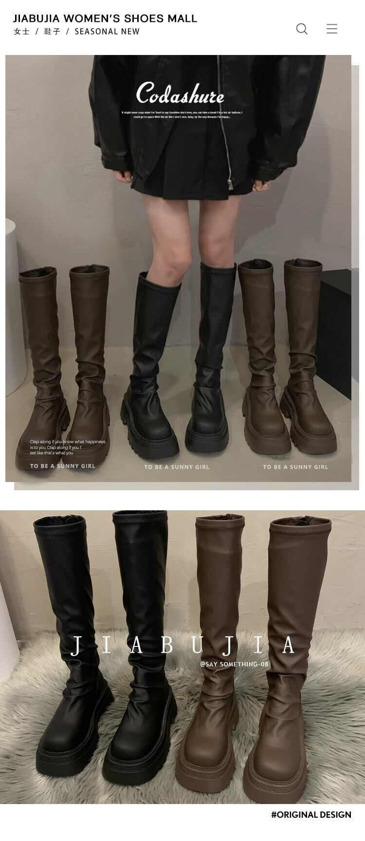 Jia Bujia ニーハイブーツの女性 2023 新しい冬スタイルインターネットセレブ多用途レトロ痩身太いヒールブーツトレンディな 靴 シューズ ウィンター 冬物 jxjxf49243224637