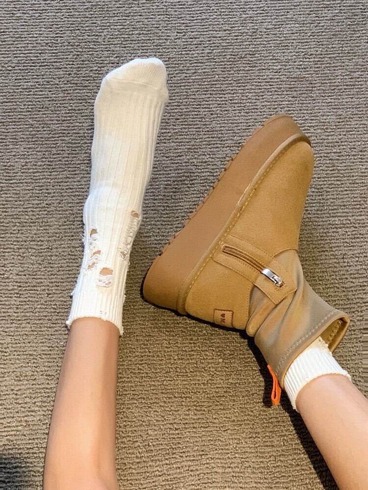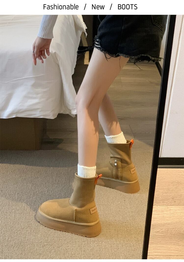 Jia Bujia レディース スノーブーツ 2023 冬の新ファッションレトロ暖かいプラスベルベット platm 厚底綿の靴トレンディな シューズ コットン ウィンター 冬物 jxjxf12614790709