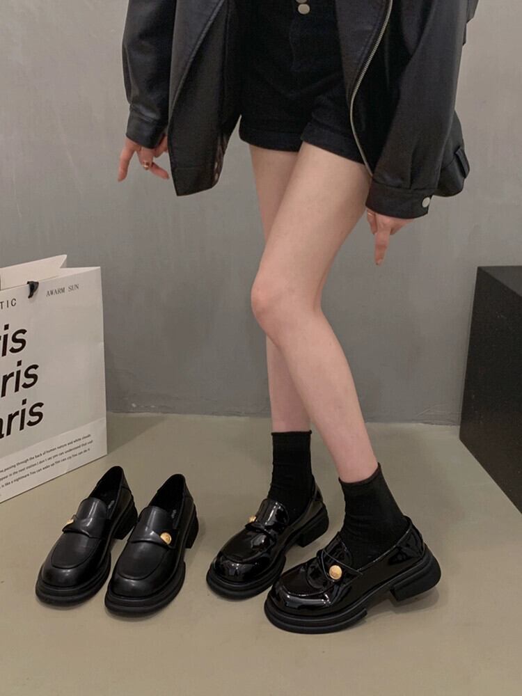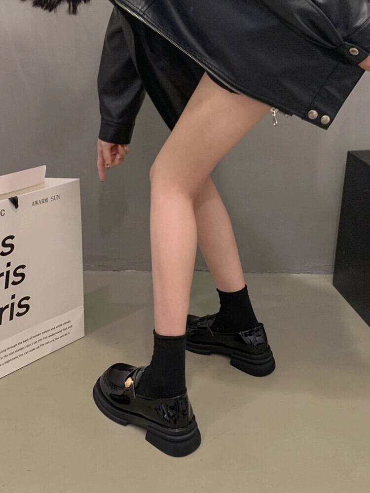 Jia Bufake ローファーの女性の 2023 冬の靴黒の厚底の小さなレトロな英国スタイルの小さな革の靴 シューズ ブラック ウィンター 冬物 レザー jxjxf82793171265
