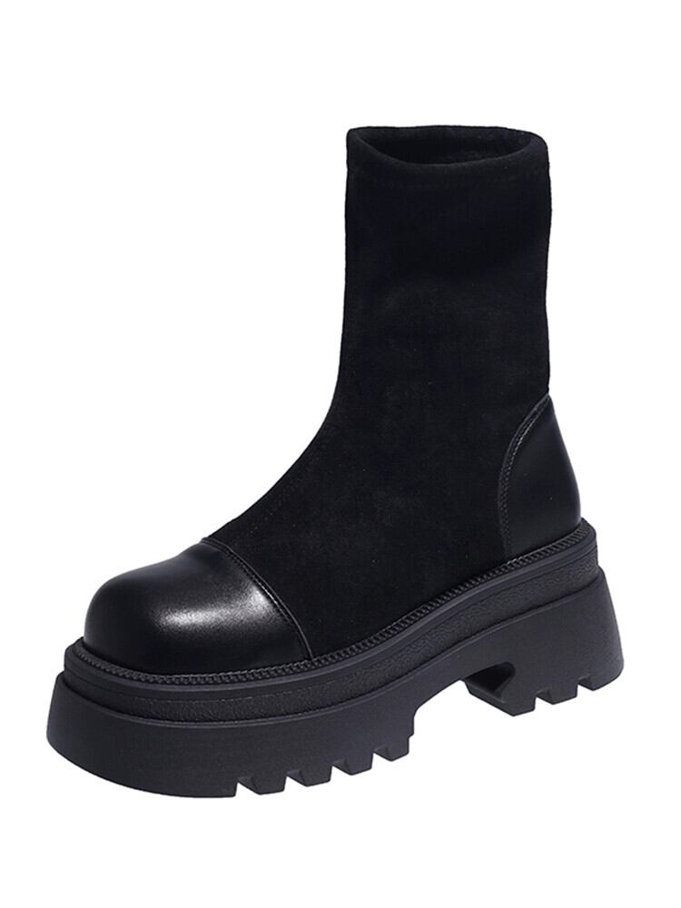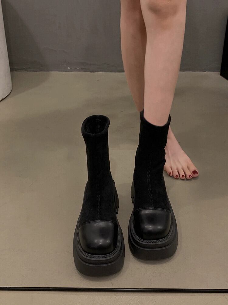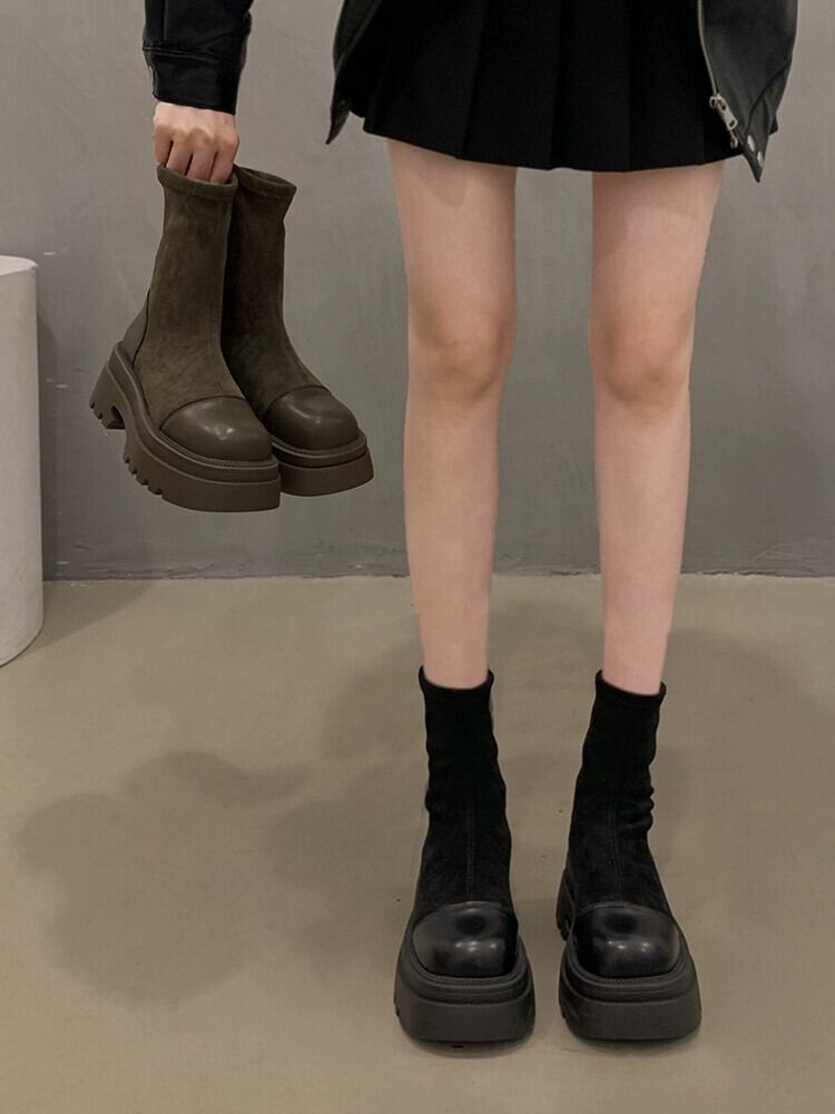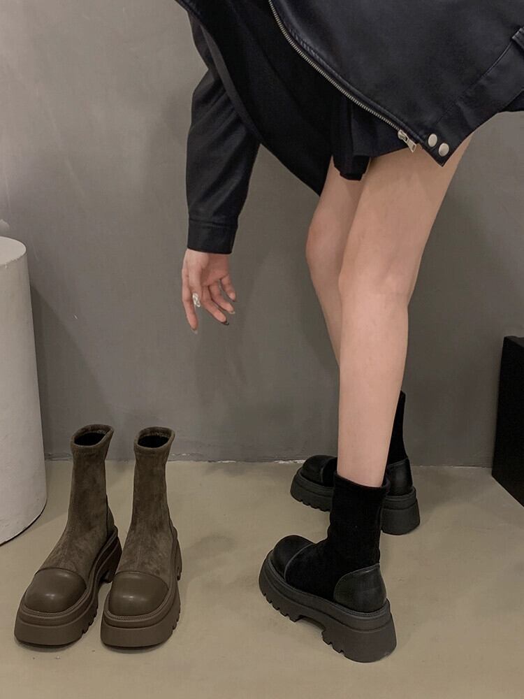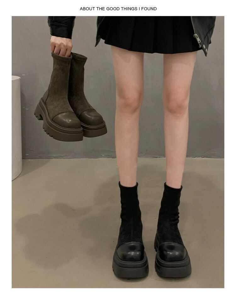 Jia Bufake マーティンブーツ女性 2023 新しい薄いブーツ秋と冬プラスベルベット弾性ブーツ小柄な人々厚底の小さなショートブーツ 靴 シューズ エラスティック 伸縮 オータム 秋物 ウィンター 冬物 jxjxf52943973312