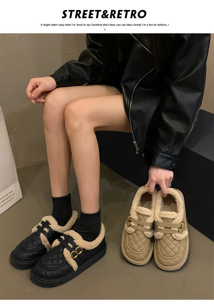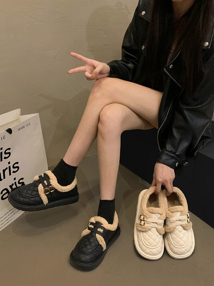Jia Bujia スタイルのシングルシューズの女性 2023 冬の新フレンチスタイルの多用途な eign スタイルの快適な暖かい柔らかい底の綿の靴のトレンド コットン ウィンター 冬物 jxjxf15191401847