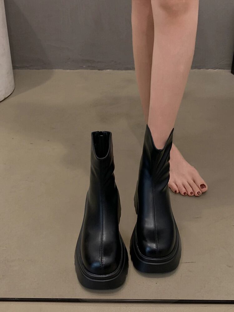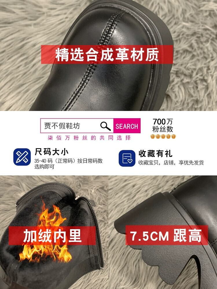 Jia Bufake ショートブーツ女性 2023 秋冬新作プラスベルベットファッショナブルで多用途な多用途スリム厚いヒールフレンチスリムブーツ 靴 シューズ オータム 秋物 ウィンター 冬物 jxjxf52839318176