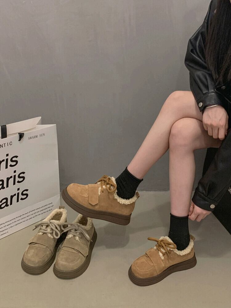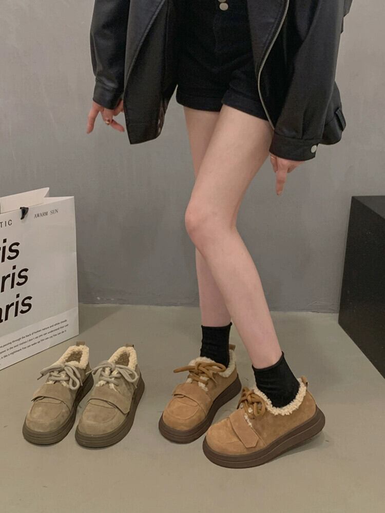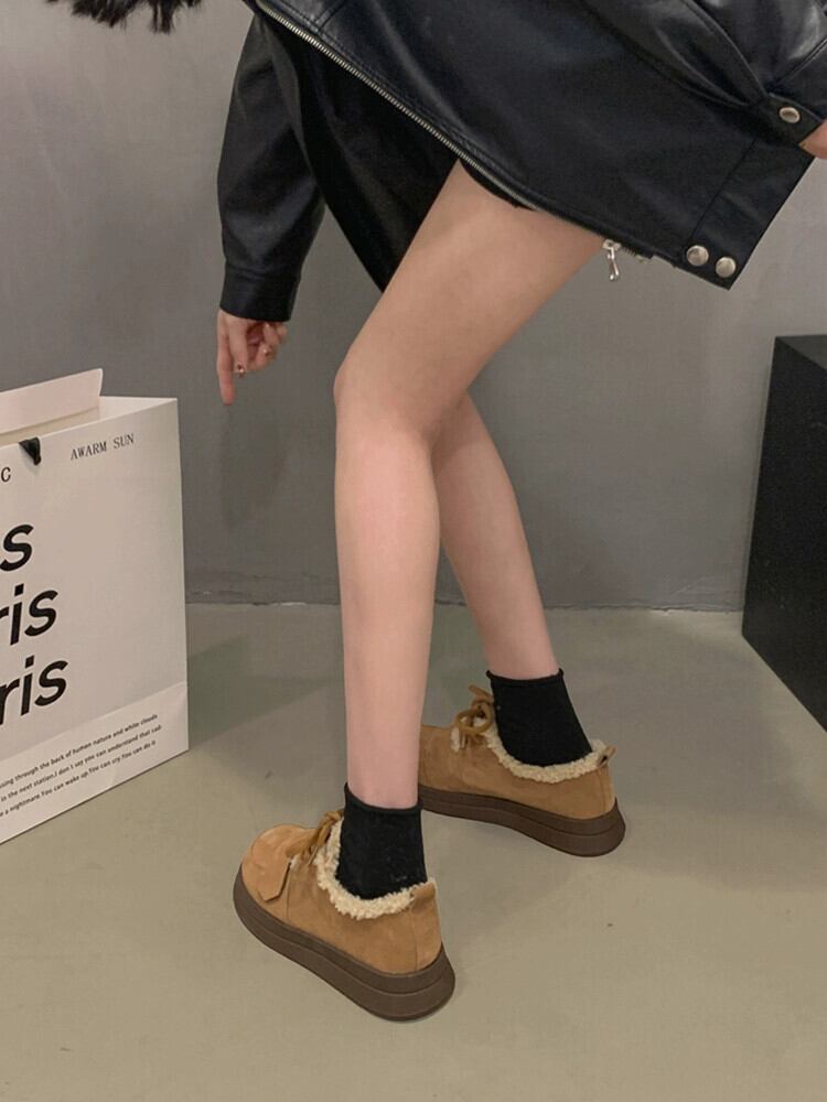 Jia Bu フェイクコットンシューズの女性の 2023 冬スタイルレトロ多用途西洋スタイル Comtable ベルベット厚底靴トレンディ ウィンター 冬物 jxjxf47448462591