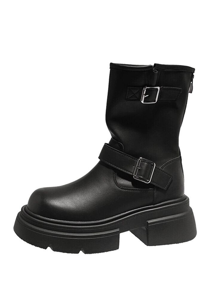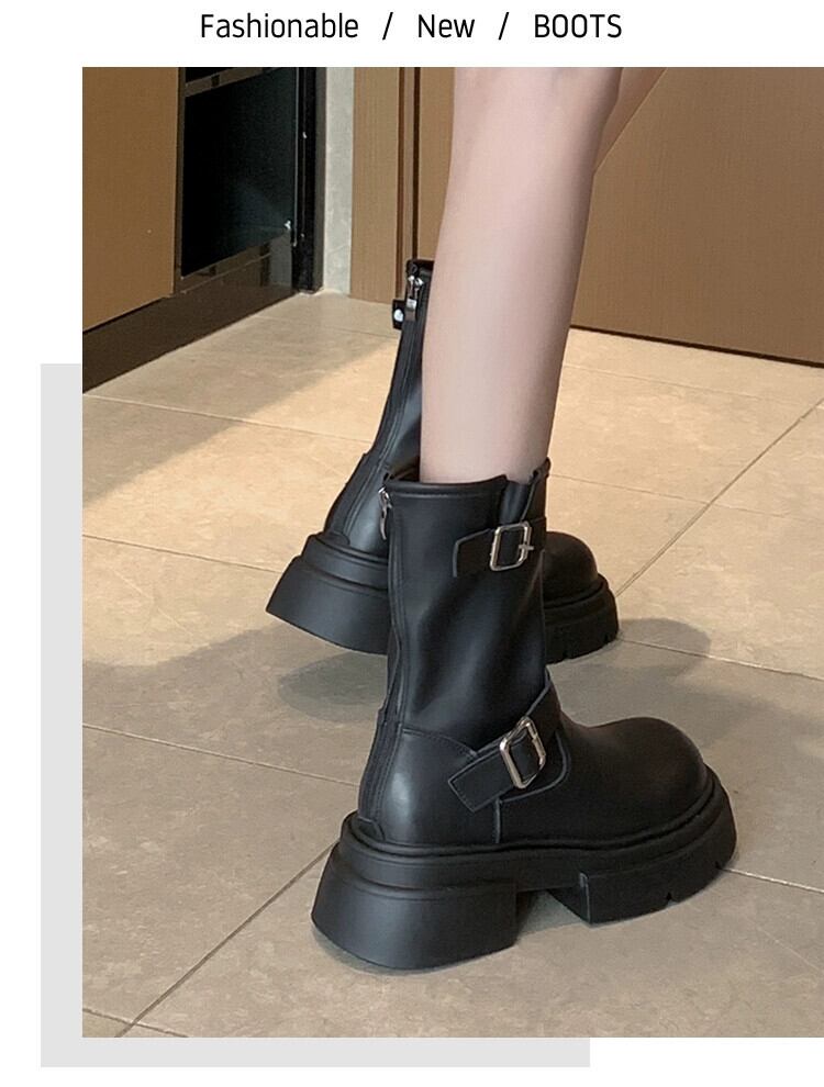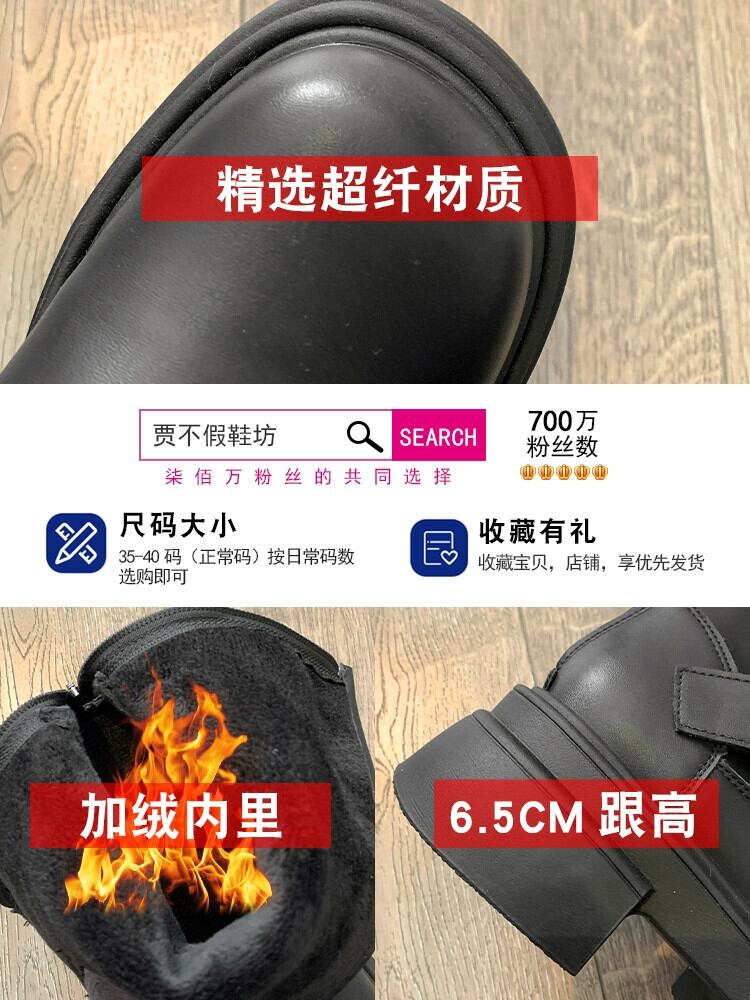 Jia Bufake マーティンブーツ女性 2023 秋冬新作プラスベルベットブーツ多用途レトロ厚底英国スタイルショートブーツ 靴 シューズ オータム 秋物 ウィンター 冬物 jxjxf4499753944