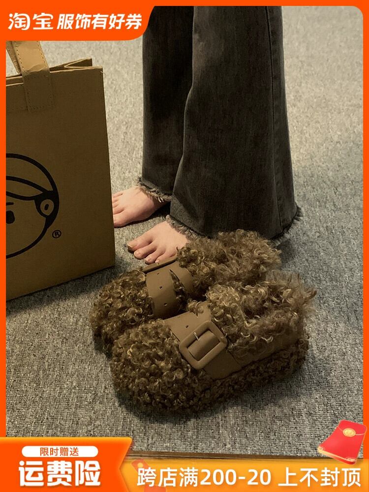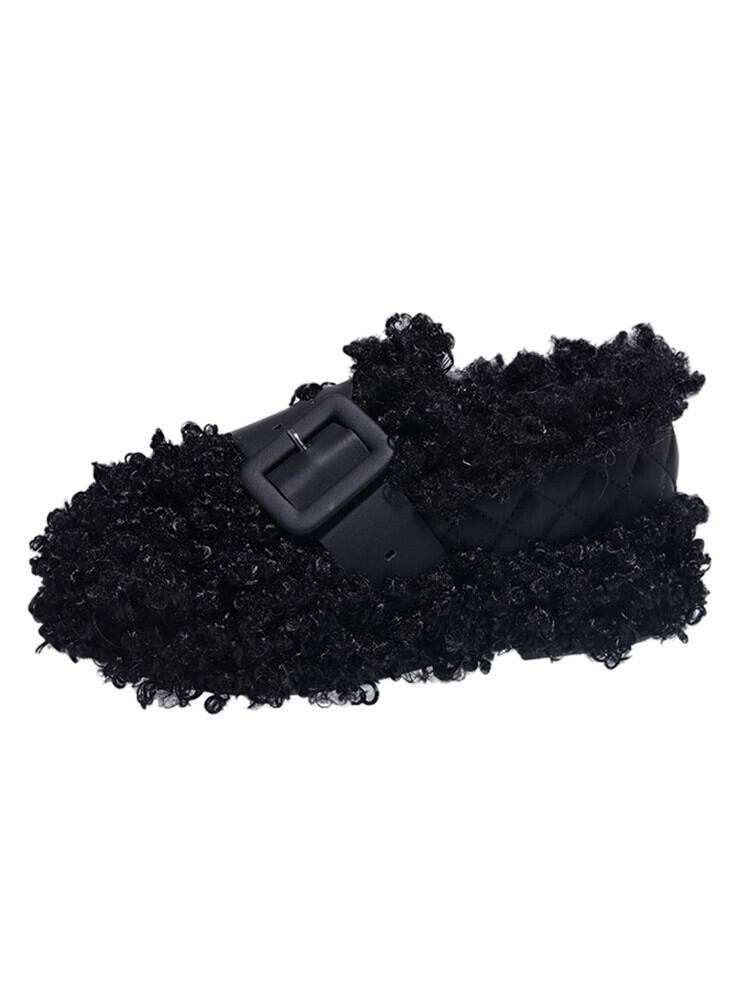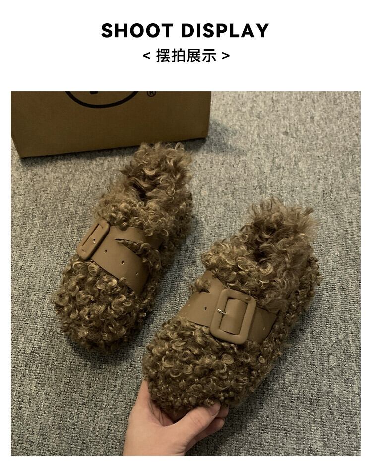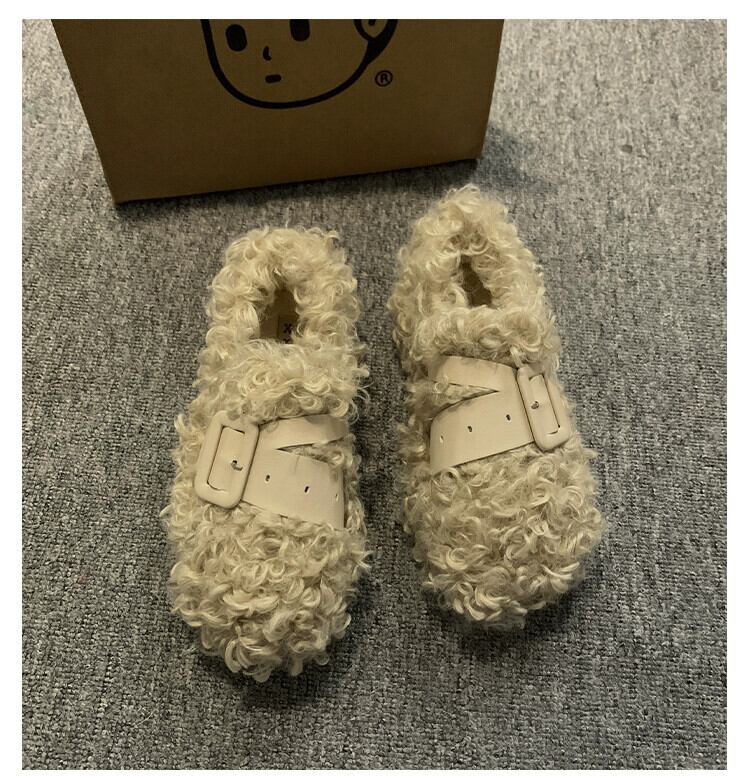 Jia Bu 偽綿の靴の女性の 2023 秋と冬可能なレトロ多用途平底 Comtable 西洋スタイルの毛皮のような靴 シューズ コットン オータム 秋物 ウィンター 冬物 jxjxf15648009595