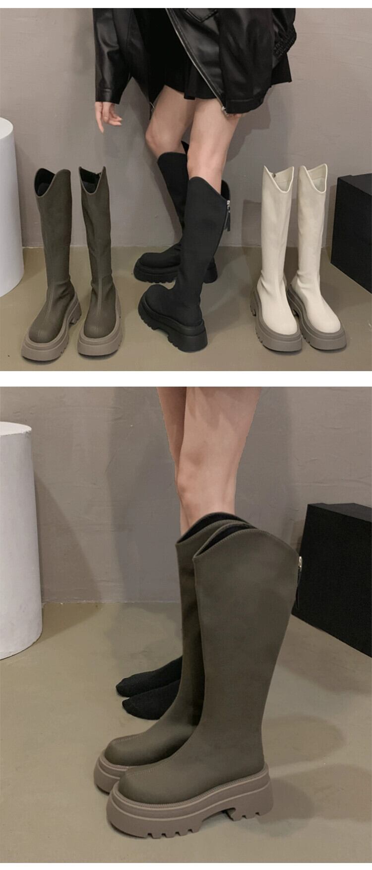 Jia Bufake ブーツの女性 2023 秋冬新作ブーツ多用途レトロ厚底ハイブーツ英国スタイルのナイトブーツ 靴 シューズ オータム 秋物 ウィンター 冬物 jxjxf13188662750
