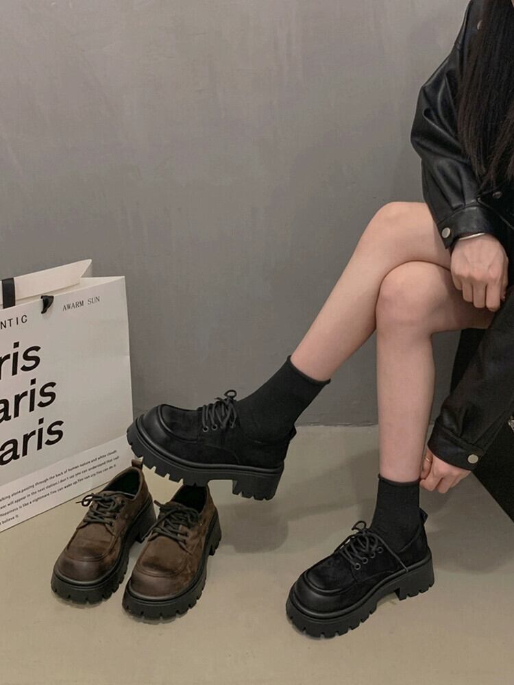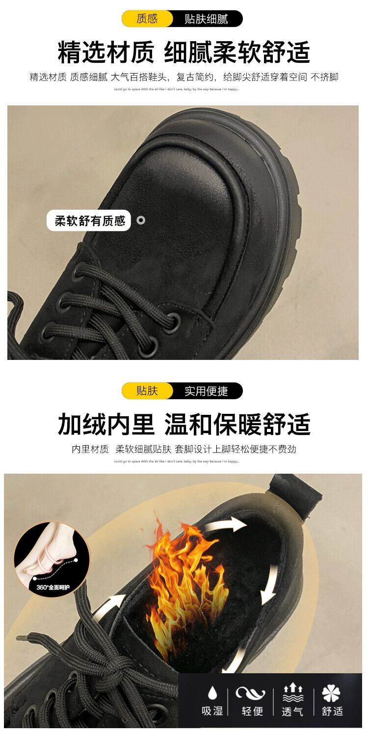 Jia Bufake 小さな革の靴の女性 2023 新しい秋と冬プラスベルベットのレトロな英国スタイルの厚い底多用途スタイルの靴 シューズ オータム 秋物 ウィンター 冬物 レザー jxjxf45480146606