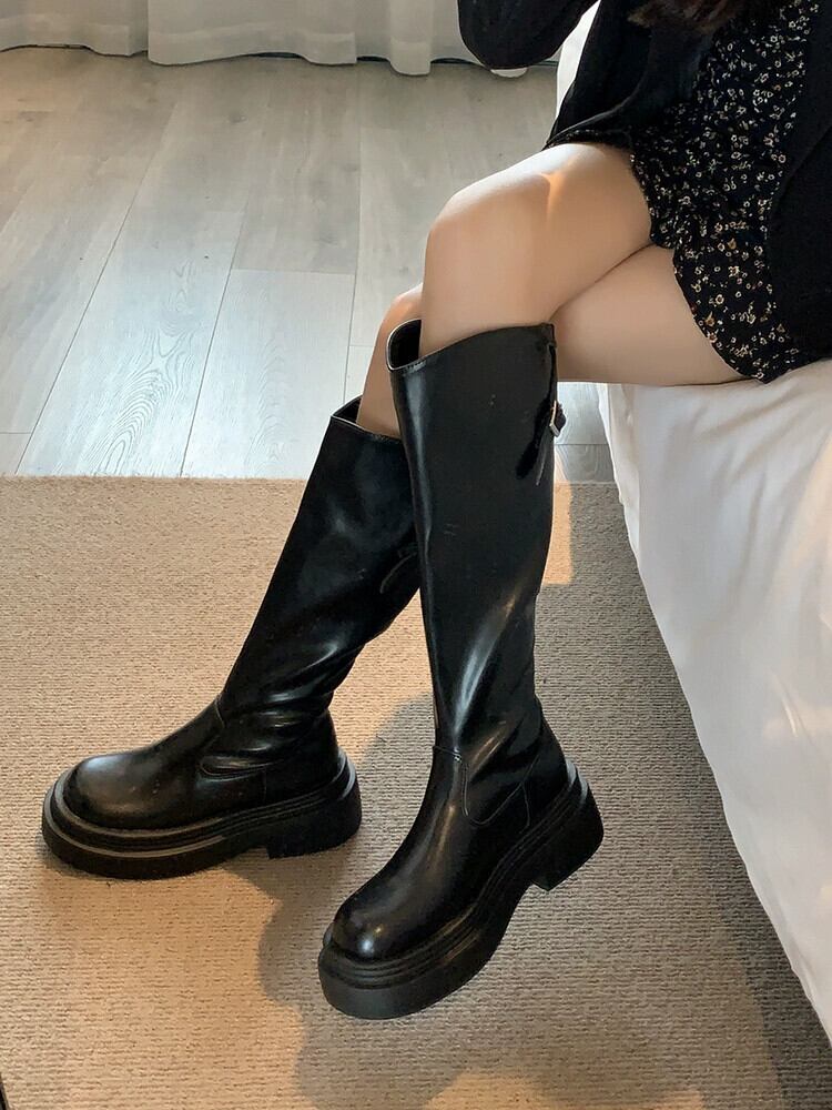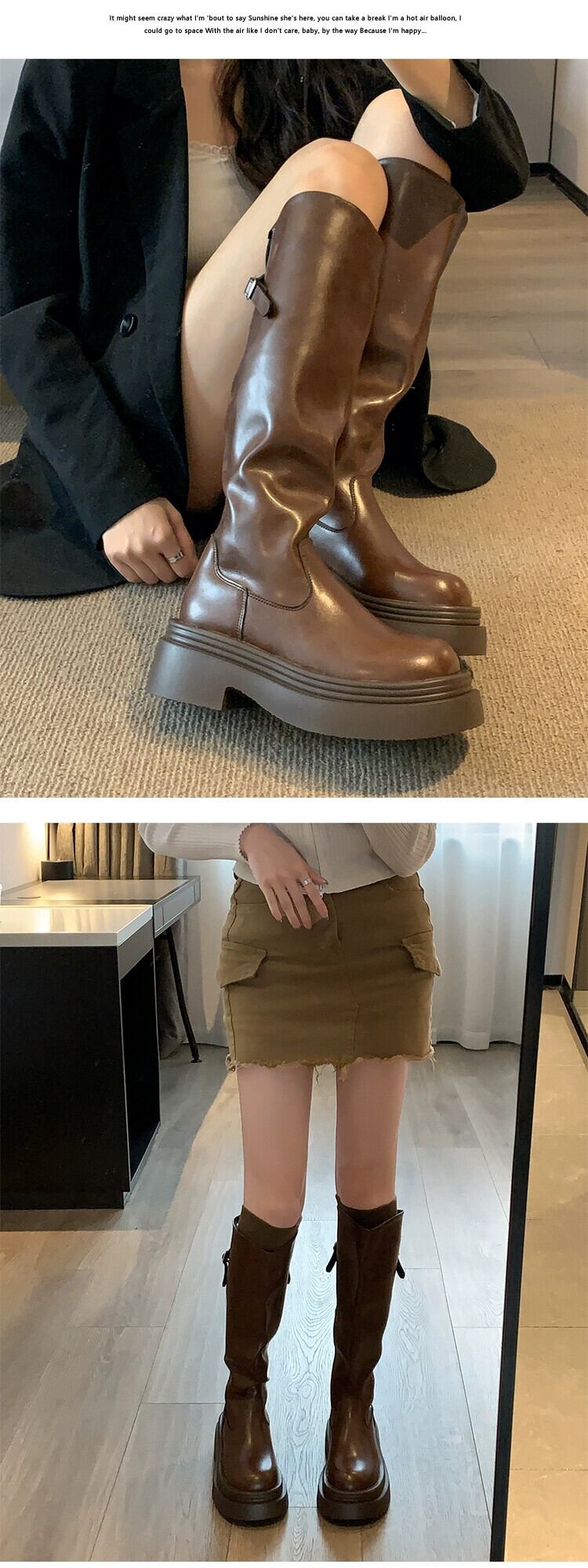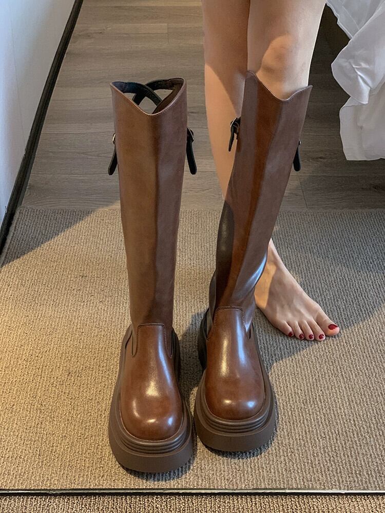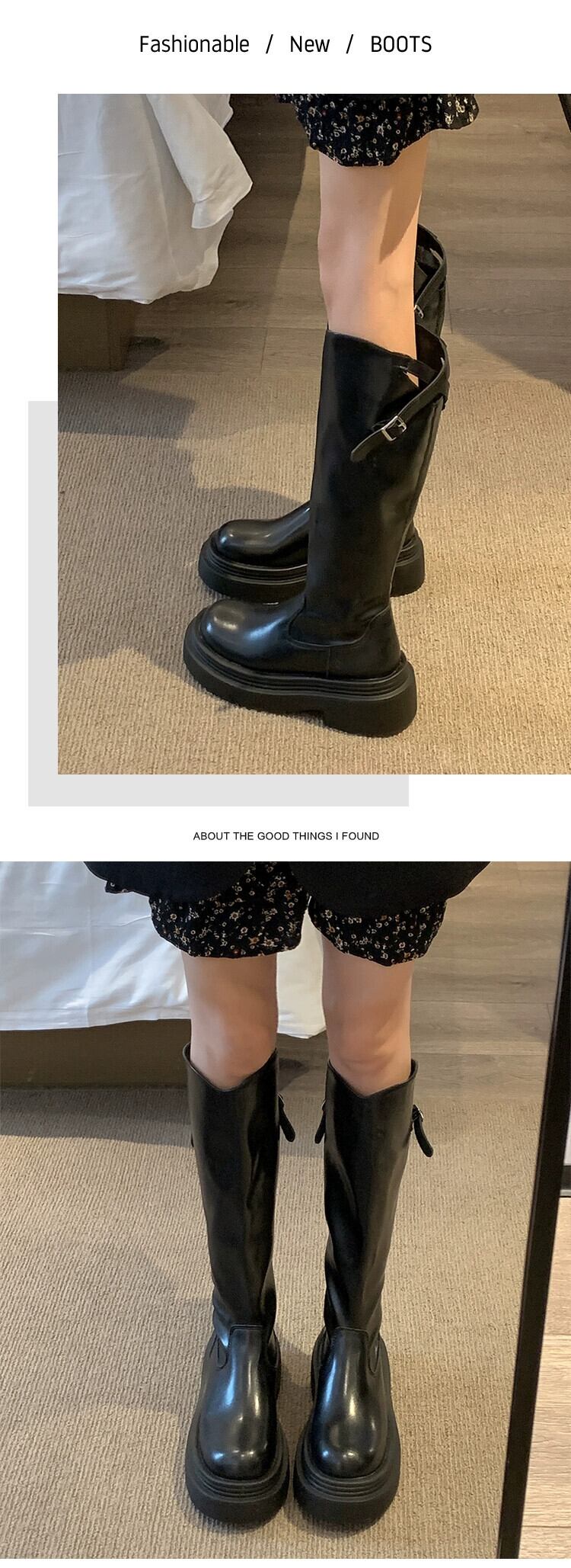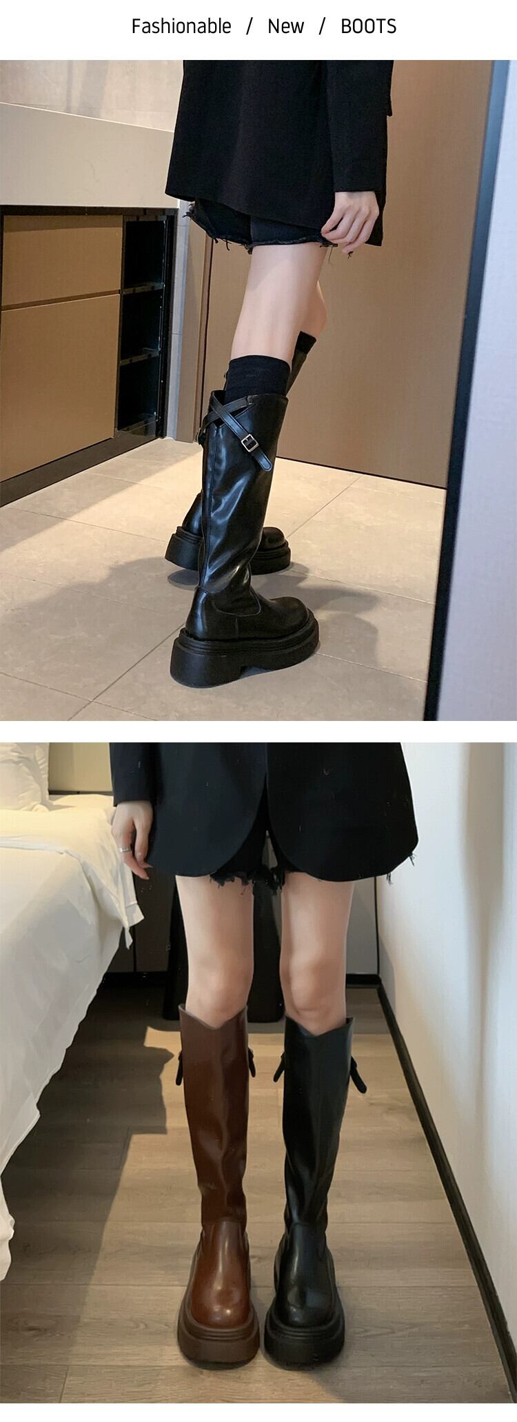 Jia Bujia インターネット有名人のブーツの女性 2023 冬の新スタイルのレトロな気質ベルトバックル人気の comtable スリムブーツトレンド 靴 シューズ ウィンター 冬物 ハーネス jxjxf92823539318