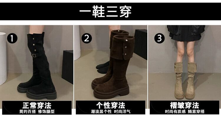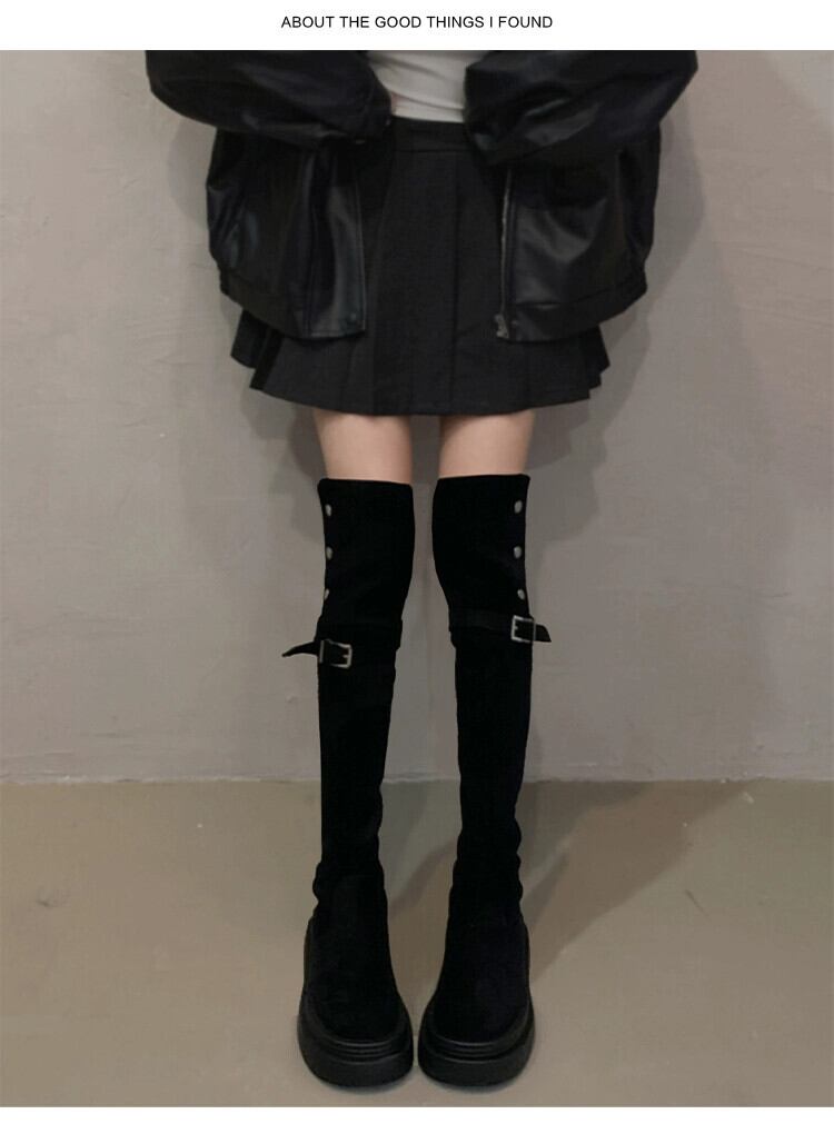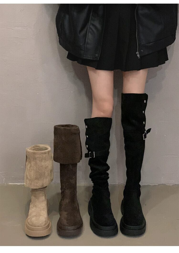Jia Bufake ロングブーツ女性 2023 新しい冬スタイルインターネットセレブファッショナブルなレトロな厚底膝上スリムブーツトレンディな 靴 シューズ ウィンター 冬物 jxjxf77331658375