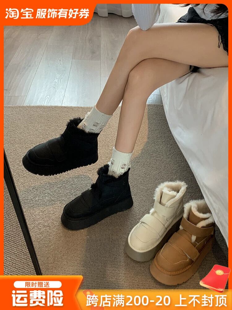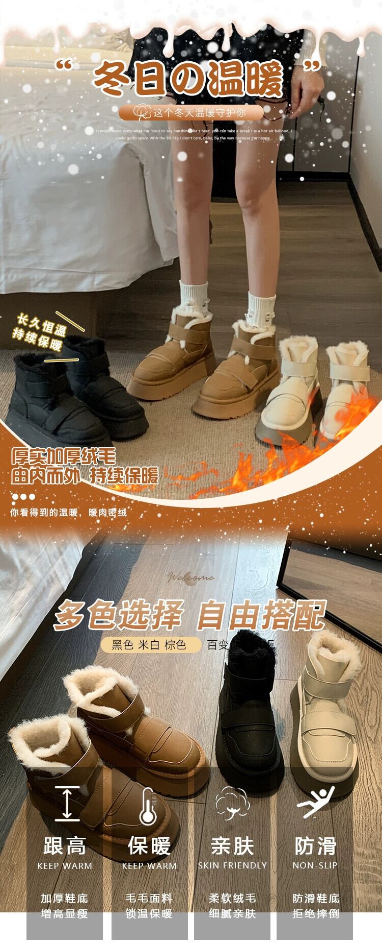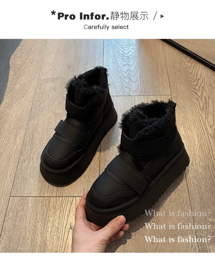 Jia Bujia スノーブーツ レディース 2023 秋冬レトロスタイルベルクロ暖かいパンケーキ厚底綿靴 シューズ コットン オータム 秋物 ウィンター 冬物 jxjxf60562456352