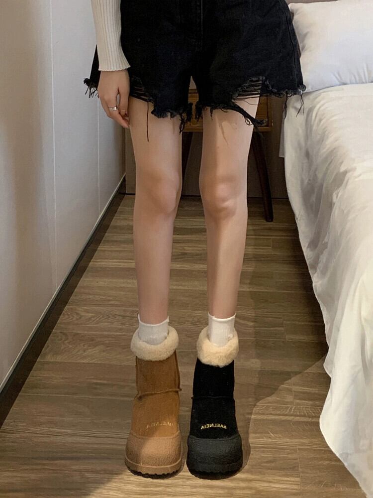 Jia Bu フェイクコットンシューズ女性の 2023 冬レトロ多用途学生プラスベルベット厚底暖かいスノーブーツトレンド 靴 ウィンター 冬物 jxjxf62860519511