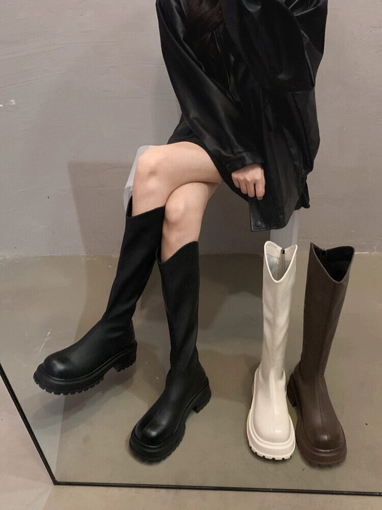 Jia Bufake ブーツの女性 2023 秋と冬の新しいハイブーツ多用途痩身レトロ厚底ハンサムスリムブーツ 靴 シューズ オータム 秋物 ウィンター 冬物 jxjxf51044422299