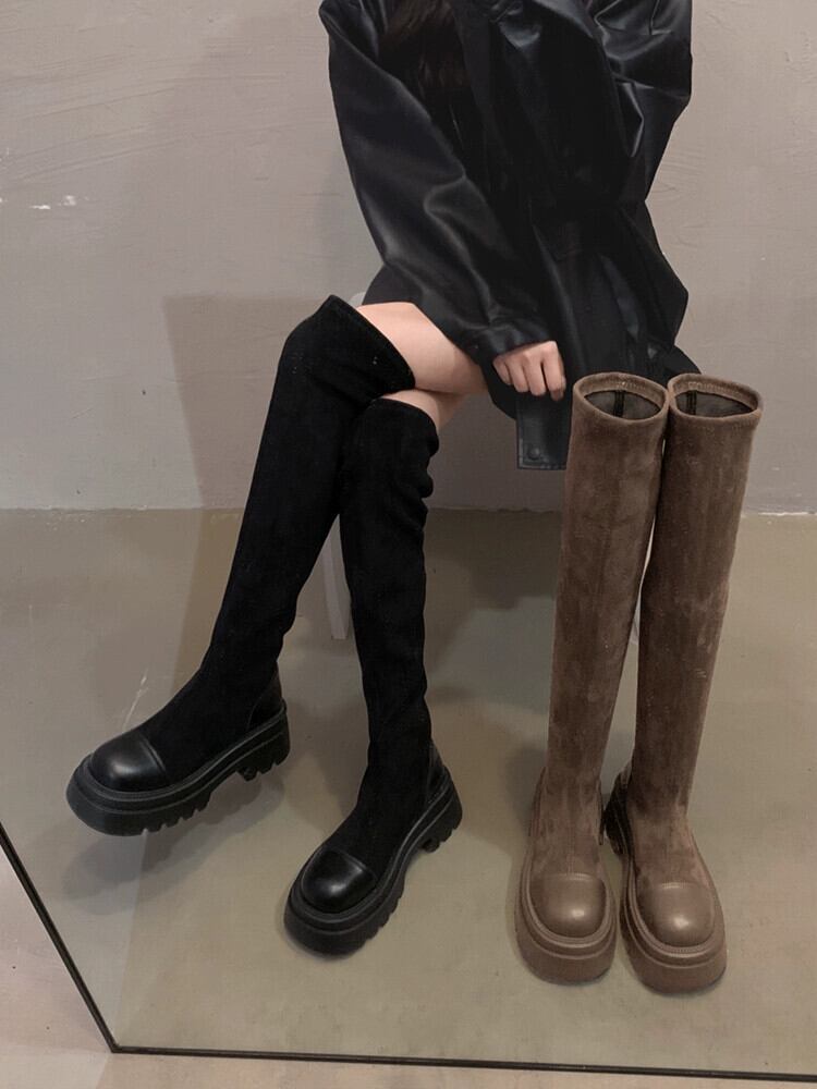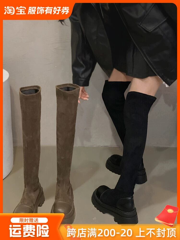 Jia Bujia インターネット有名人弾性ブーツの女性 2023 冬の新スリムレトロ多用途厚底膝上スリムブーツ 靴 シューズ エラスティック 伸縮 ウィンター 冬物 jxjxf54456569300