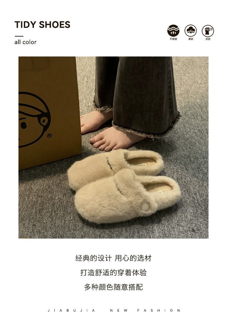 Jia Bujia Baotou スリッパ女性 2023 冬スタイルの外出、優しく快適な平底の毛皮のようなスリッパ ミュール 靴 シューズ ウィンター 冬物 jxjxf82699686790