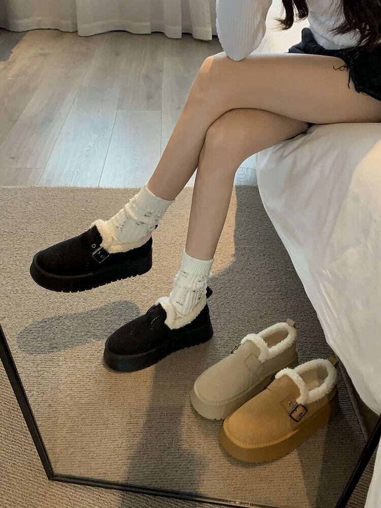 Jia Bu 偽綿の靴の女性 2023 冬のフレンチスタイルのシンプルで多用途のレトロプラスベルベット platm 厚底スノーブーツ シューズ コットン ウィンター 冬物 jxjxf76557349272