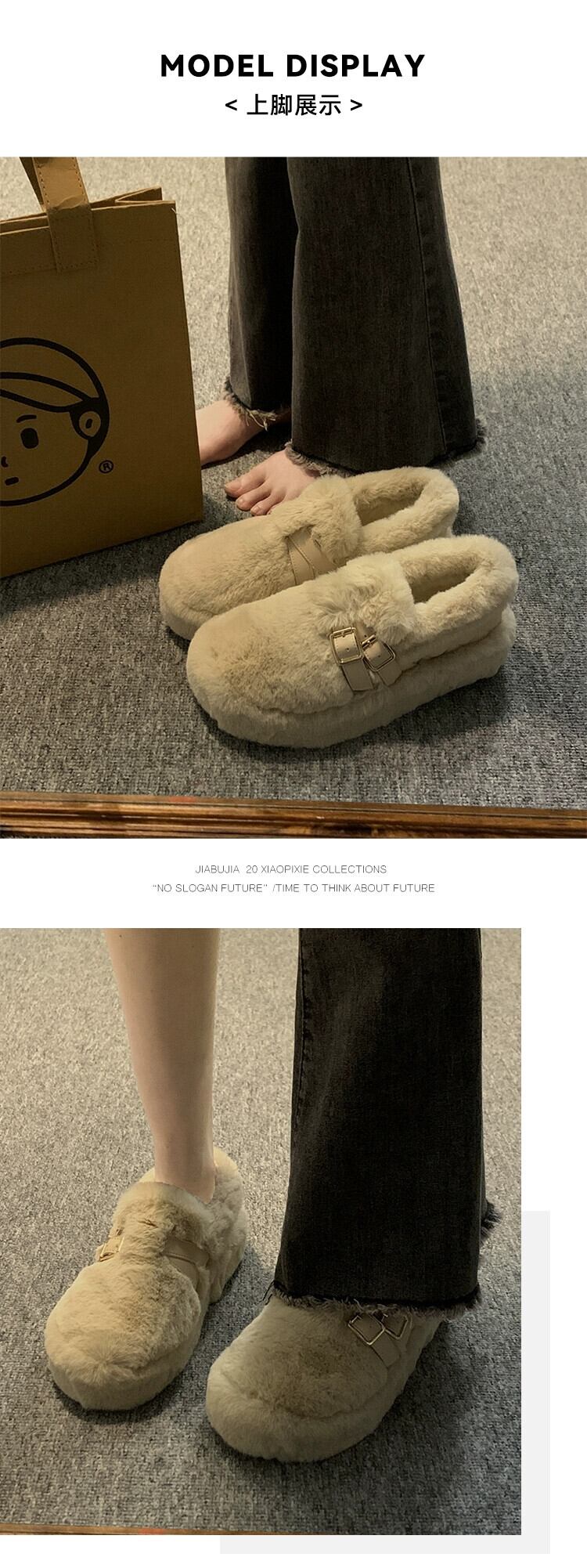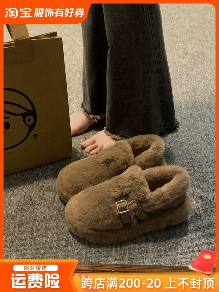 Jia Bu 偽綿の靴の女性の 2023 秋と冬スーパーホット多用途レトロ暖かい厚底 Comtable 毛皮のような靴 シューズ コットン オータム 秋物 ウィンター 冬物 jxjxf61861691442