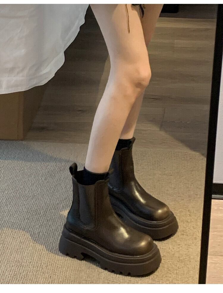 Jia Bufake ブーツの女性のショートブーツ 2023 冬の新スタイルレトロハンサムプラスベルベット厚い底フライドストリートチェルシーブーツトレンド 靴 シューズ ウィンター 冬物 jxjxf80163572150