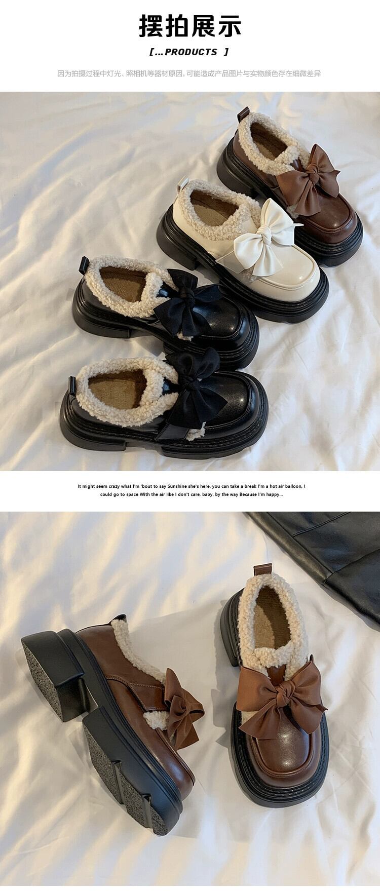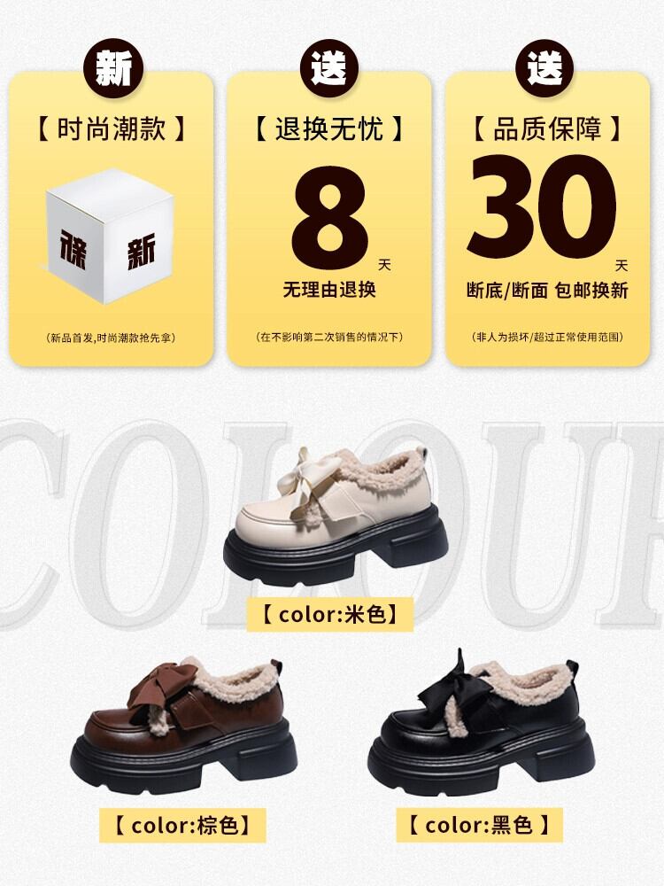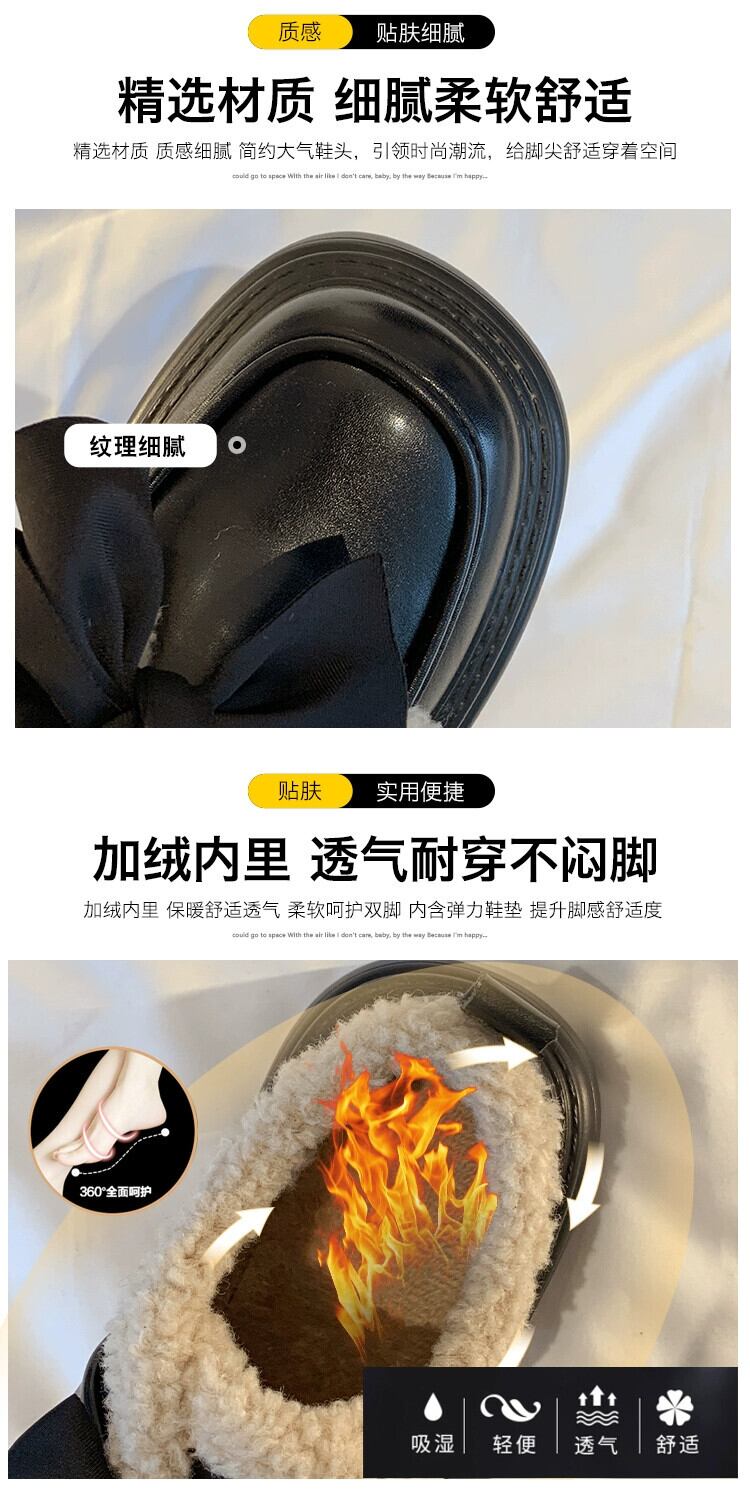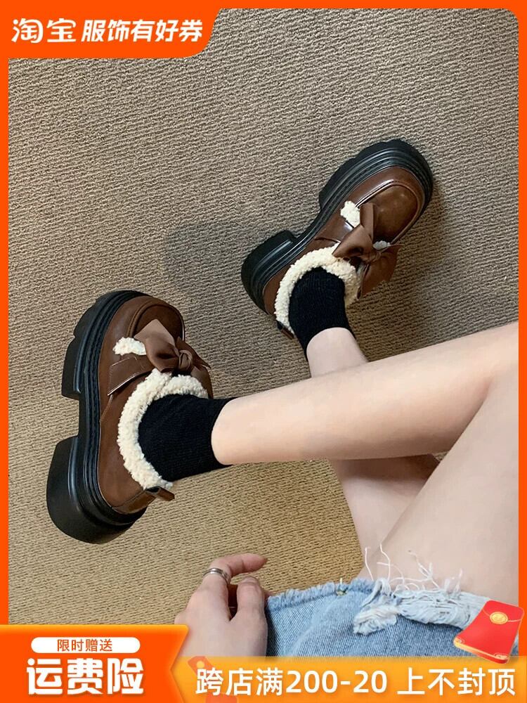Jia Bujie スタイルシングルシューズ女性 2023 冬の新スタイルファッショナブルなレトロな弓厚底小さな革靴トレンド リボン ウィンター 冬物 レザー jxjxf586316354