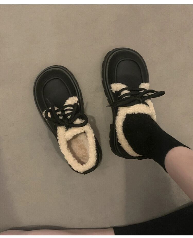 Jia Bujia スタイルの小さな革の靴の女性 2023 冬の新レトロスタイル comtable 多用途厚いヒールシングルシューズトレンド ウィンター 冬物 レザー jxjxf91822926444