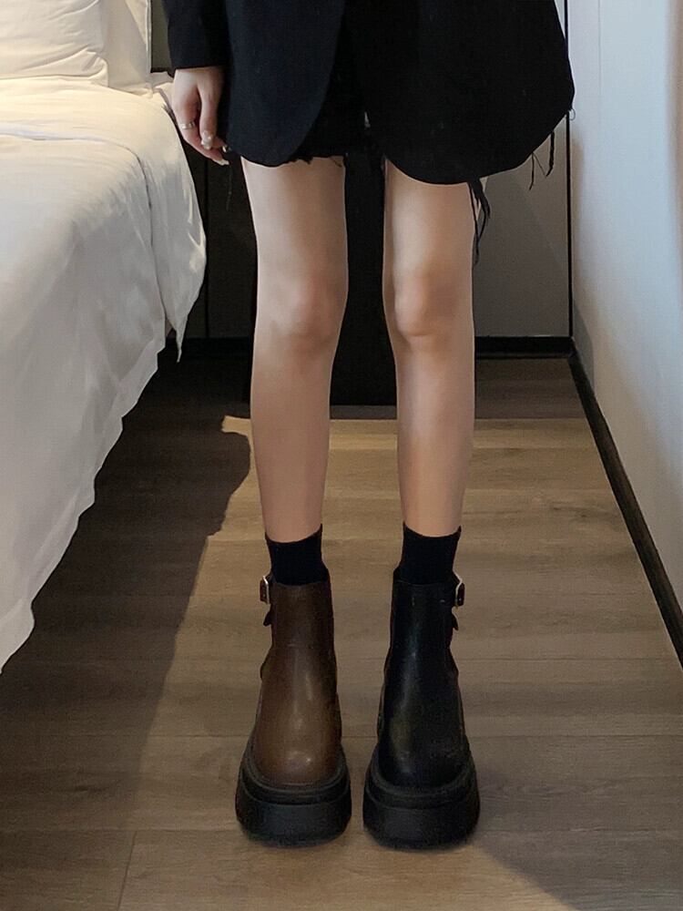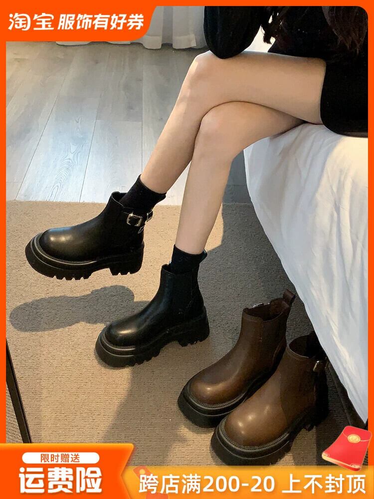 Jia Bujia レディース ショートブーツ 2023 冬の新ファッション多用途レトロハンサム厚底ストリートチェルシーブーツ 靴 シューズ ウィンター 冬物 jxjxf68905301163