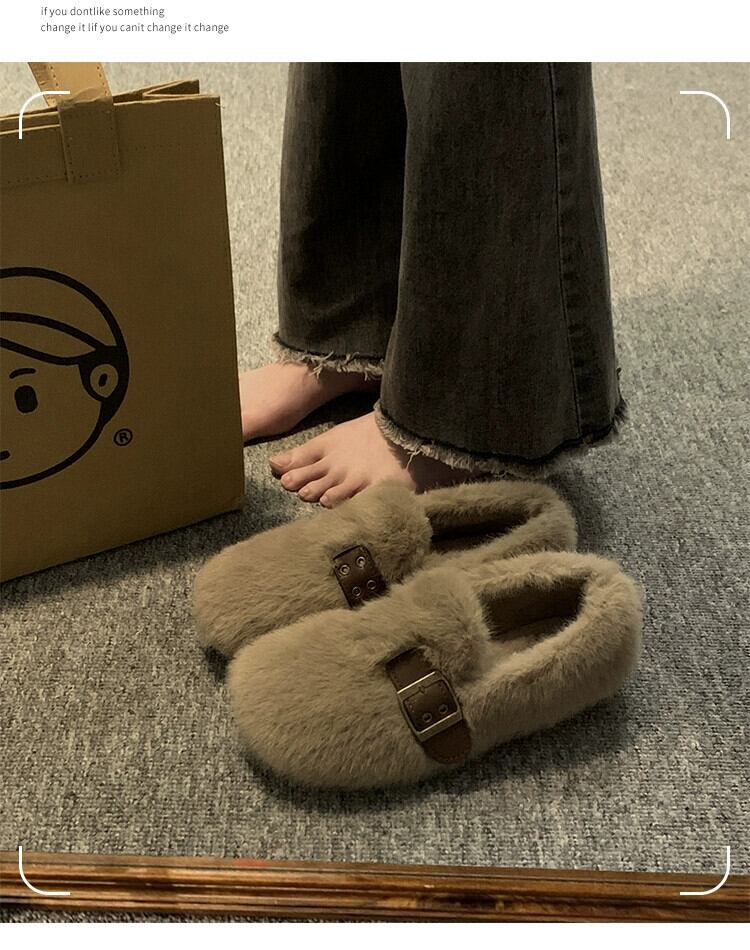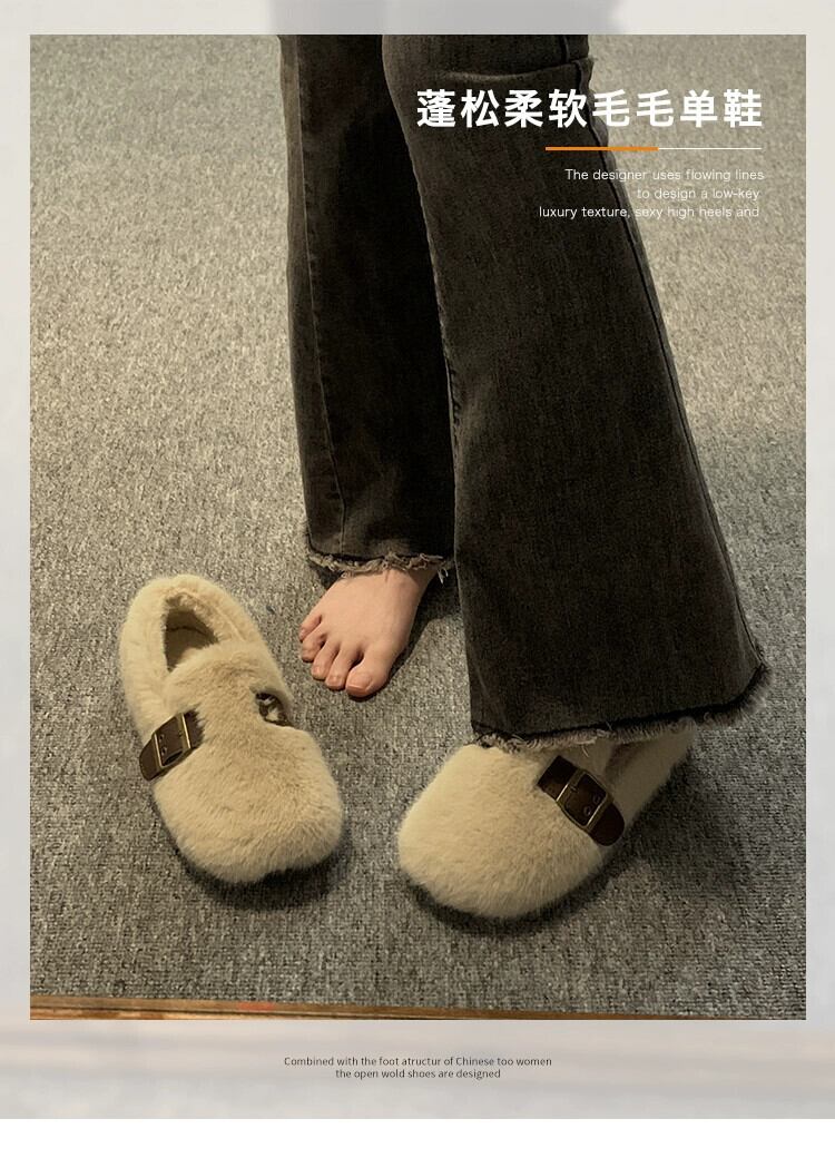 Jia Bujia 毛皮のような靴の女性 2023 冬の新スタイルのインターネット有名人多用途レトロ平底 comtable ビーニー靴トレンディな シューズ ウィンター 冬物 jxjxf47791516464