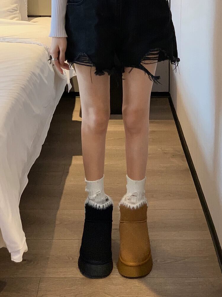 Jia Bufake スノーブーツの女性 2023 冬の新スタイル comtable レトロ小人プラスベルベット暖かい厚底コットンブーツトレンディな 靴 シューズ ウィンター 冬物 jxjxf50933471856