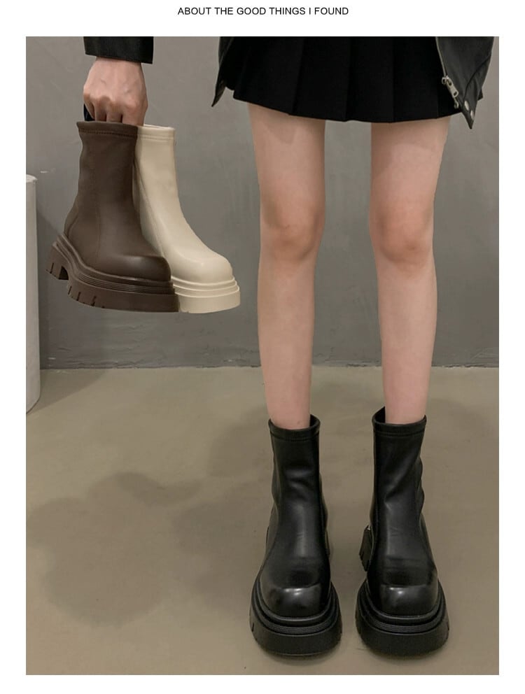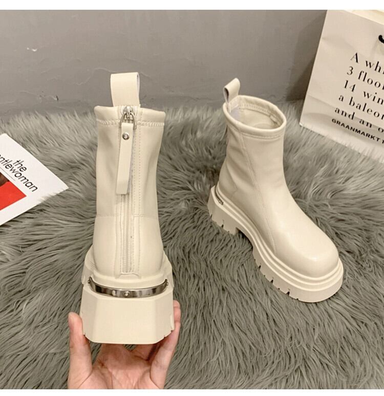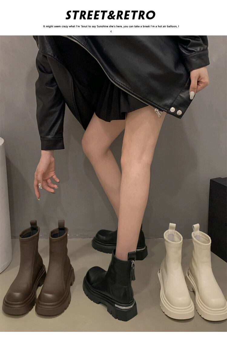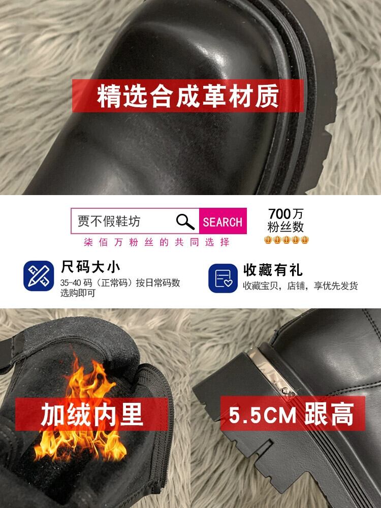Jia Bujia ブーツ女性のショートブーツ 2023 冬レトロ西洋スタイル多用途厚い底プラスベルベットフレンチスリムブーツ 靴 シューズ ウィンター 冬物 jxjxf60959309392