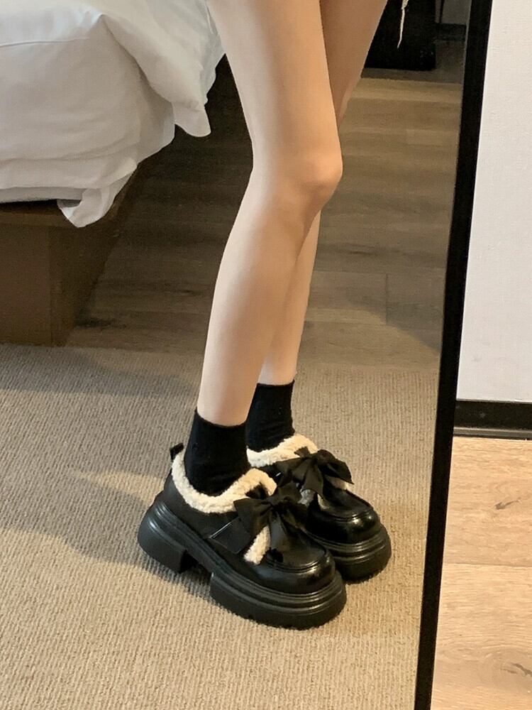 Jia Bufake 厚いヒールの小さな革の靴の女性 2024 春と秋のファッショナブルな弓レトロメリージェーンの靴トレンディな シューズ リボン スプリング 春物 オータム 秋物 レザー jxjxf73756300036