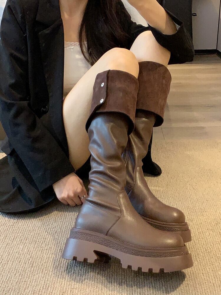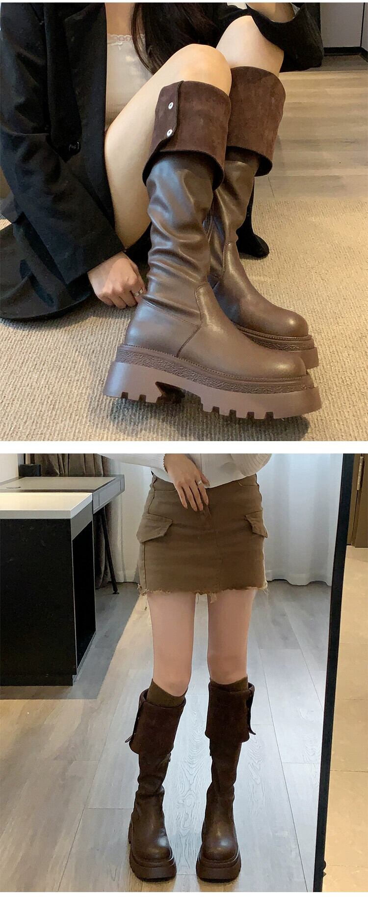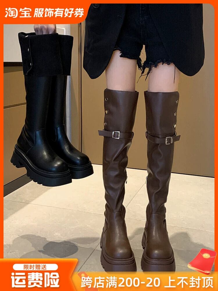 Jia Bujia 膝上ブーツの女性 2023 冬の新ベルベットオールマッチフレンチレトロ厚底 eign スタイルスリムブーツ 靴 シューズ ウィンター 冬物 jxjxf34487496329