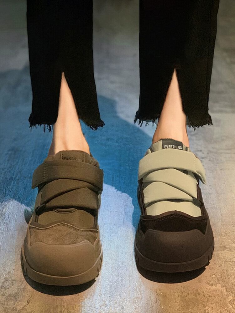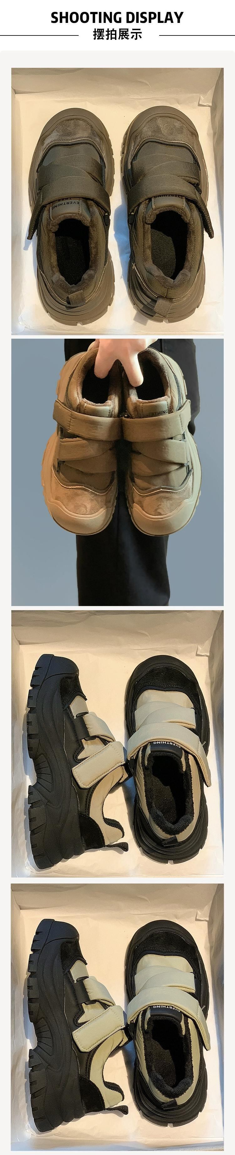 Jia Bujia カジュアルシューズの女性 2023 冬の新レトロ comtable ベルクロ厚底プラスベルベットスポーツシューズトレンディな 靴 ウィンター 冬物 jxjxf22337735871