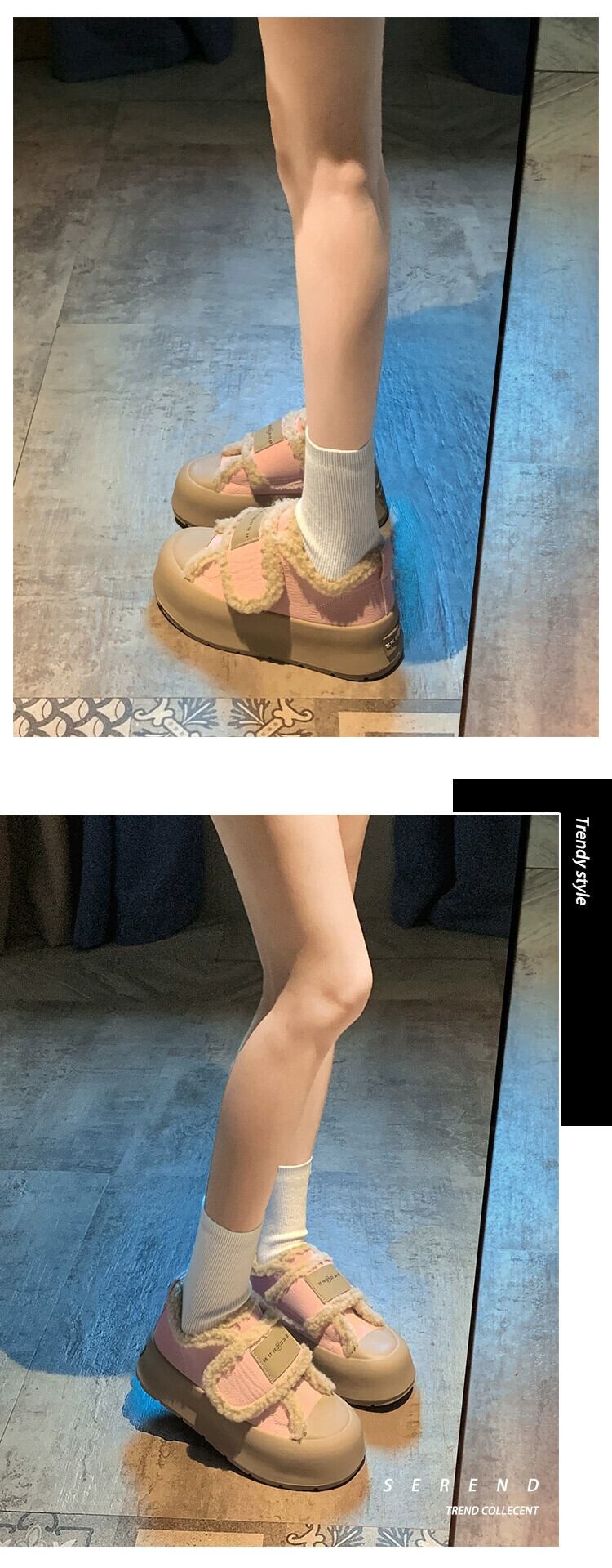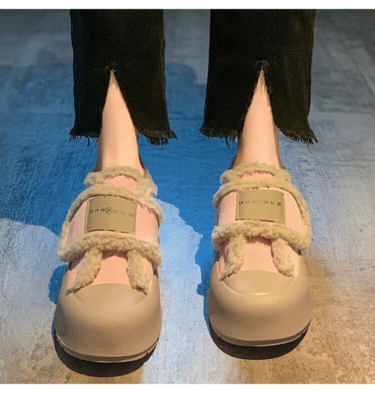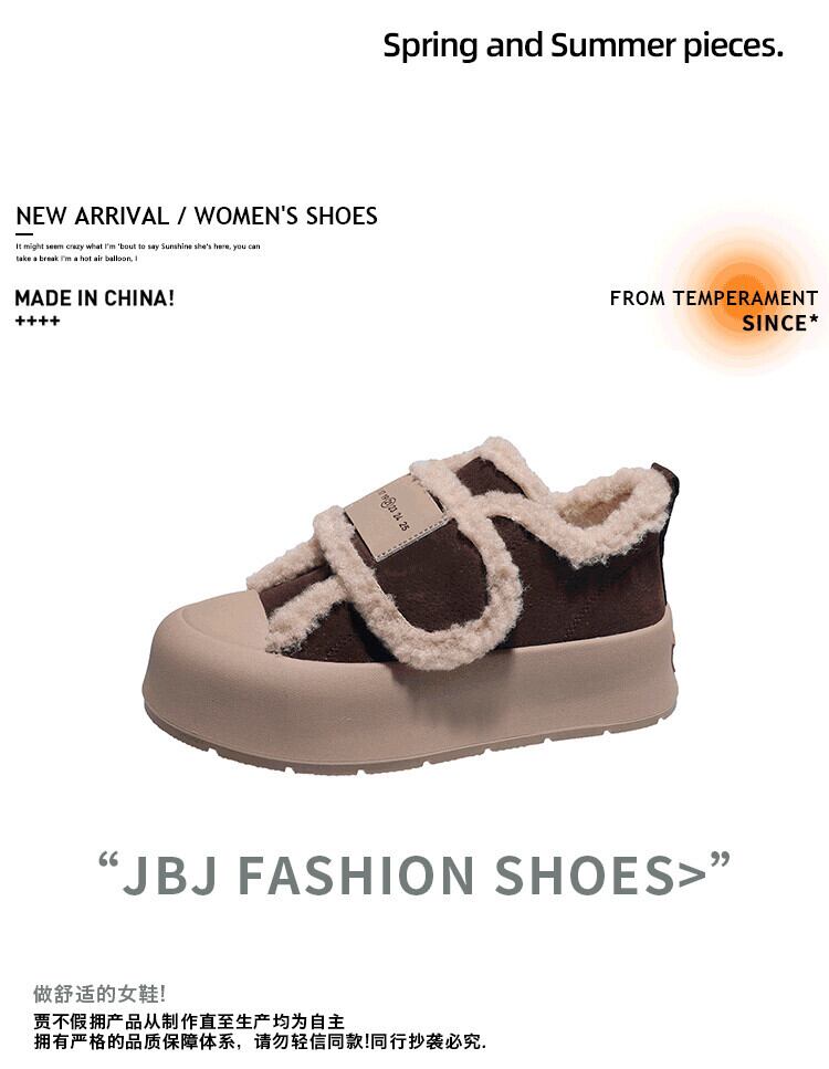 Jia Bu 偽綿靴女性の 2023 冬のレトロ学生ベルクロ暖かいベルベット厚底靴 シューズ コットン ウィンター 冬物 jxjxf63442770553