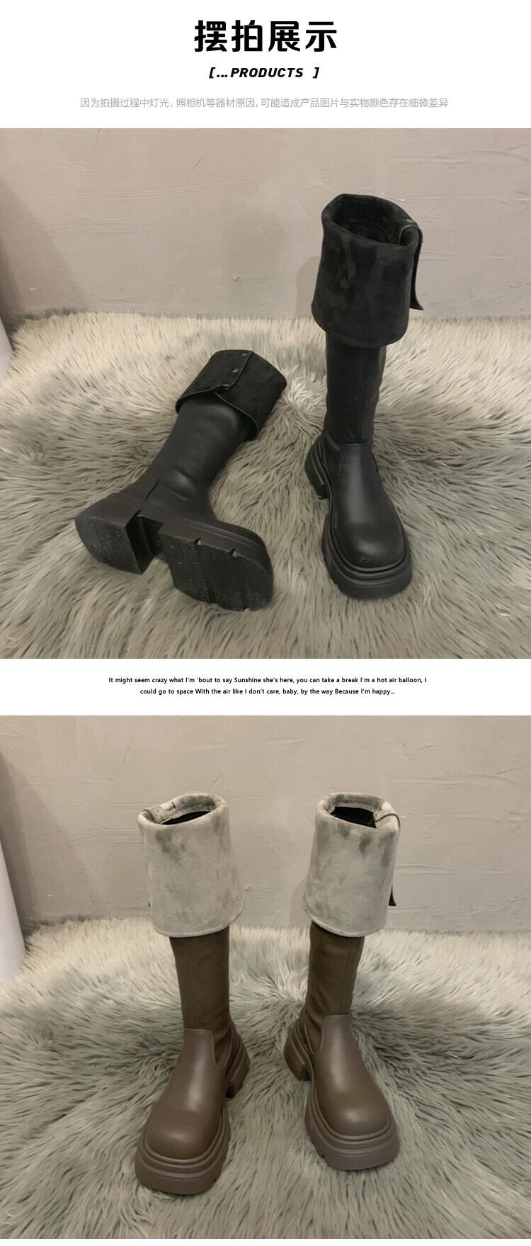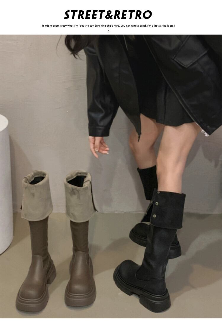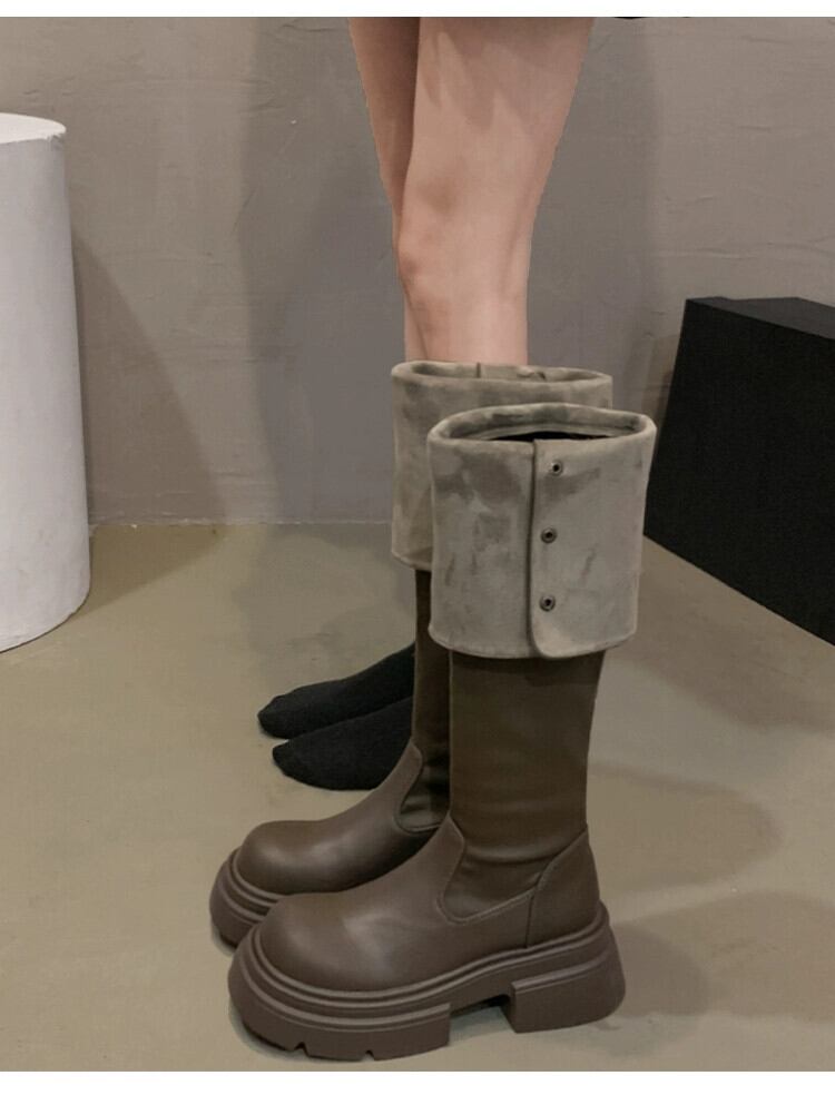 Jia Bufake ブーツの女性 2023 冬の新ファッションレトロ多用途小さな厚いヒールとベルベットのスリムブーツ 靴 シューズ ウィンター 冬物 jxjxf70999103501