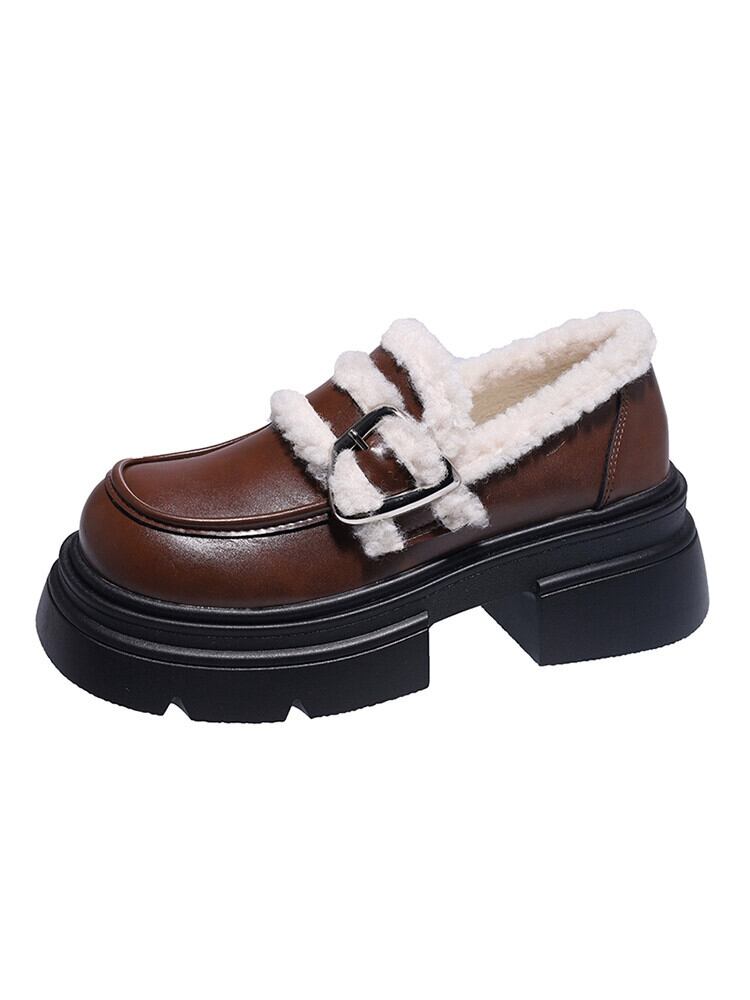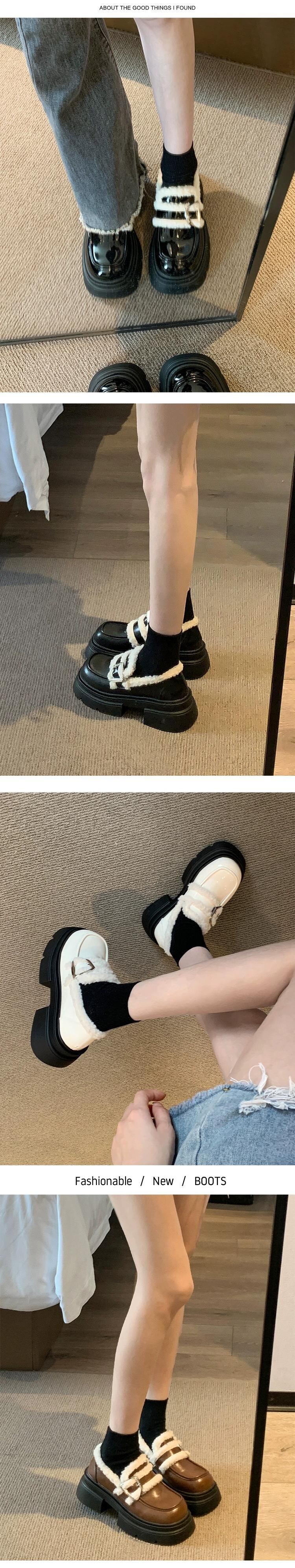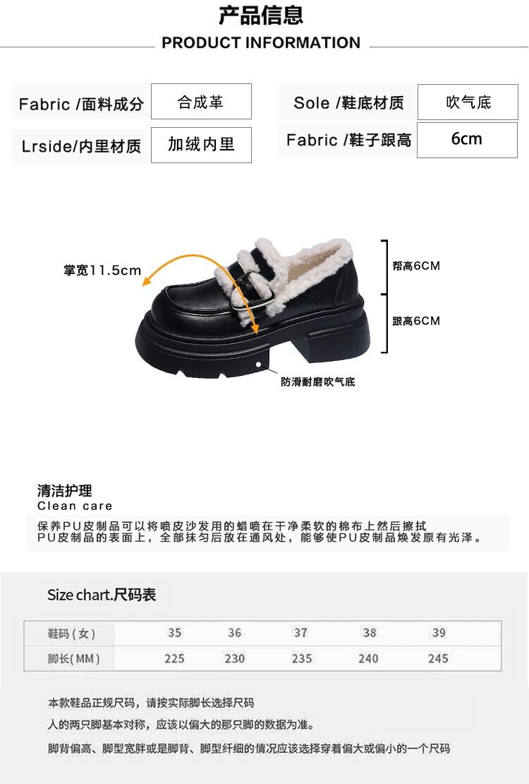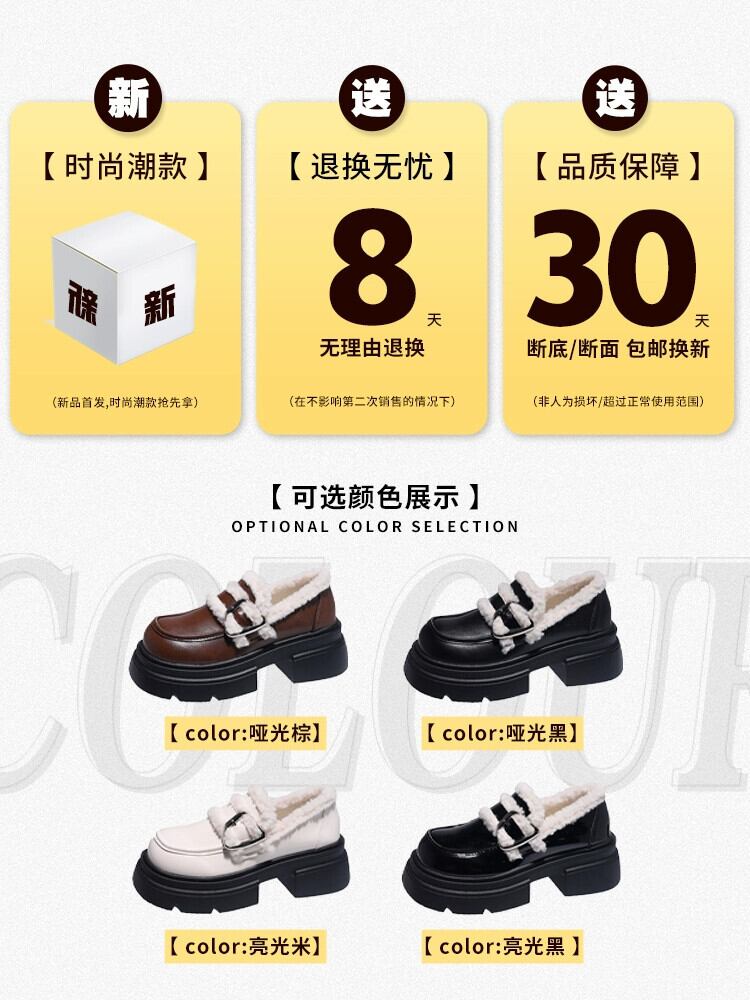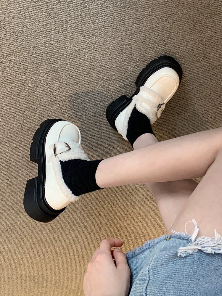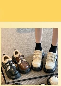 Jia Bujia スタイルの小さな革靴の女性 2023 秋と冬の新しいスタイルのベルベットオールマッチ小さな厚底レトロローファー シューズ オータム 秋物 ウィンター 冬物 レザー jxjxf37457841461